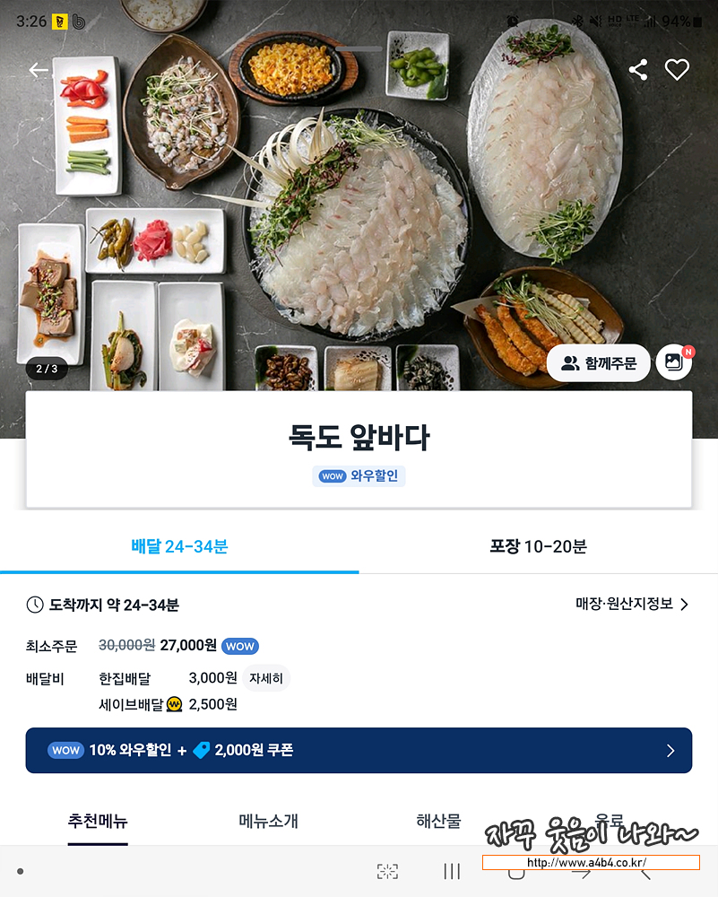 성내동 독도앞바다 모듬회 테이크아웃 vs 쿠팡이츠