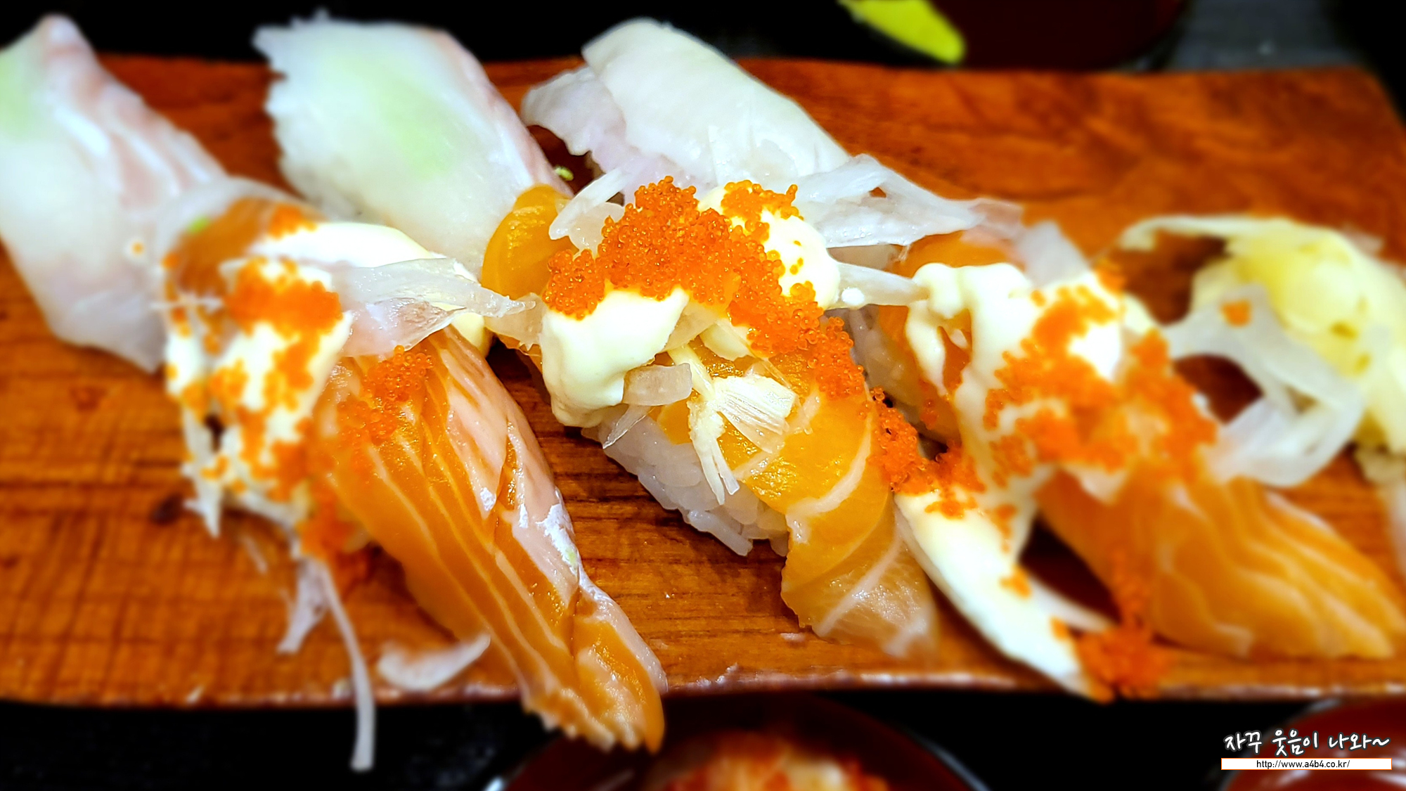 코엑스몰 맛집 동경 초밥 맛과 식감은 무난했습니다. 다만 연어초밥위에 너무 많은 녀석들이 올라가 있다는, 조금 담백한 연어 초밥을 기대 했었는데, 그래도 워낙 초밥을 좋아해서 잘 먹었습니다.