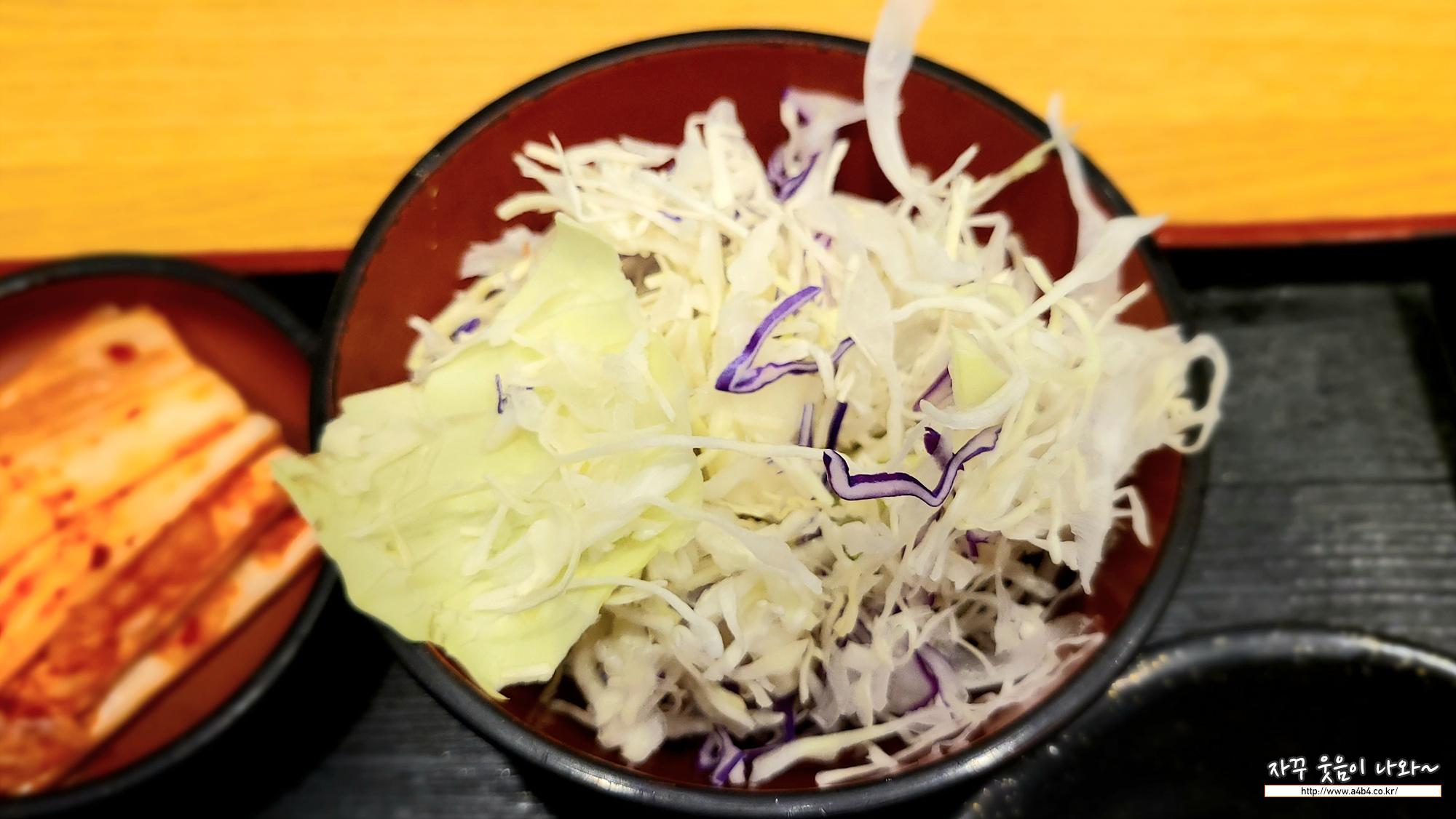 사이드로는 샐러드와 김치, 단무지, 락교가 나옵니다. 락교 좋아하는데 테이블에 리필하는 통이 없어 조금 아쉬운...