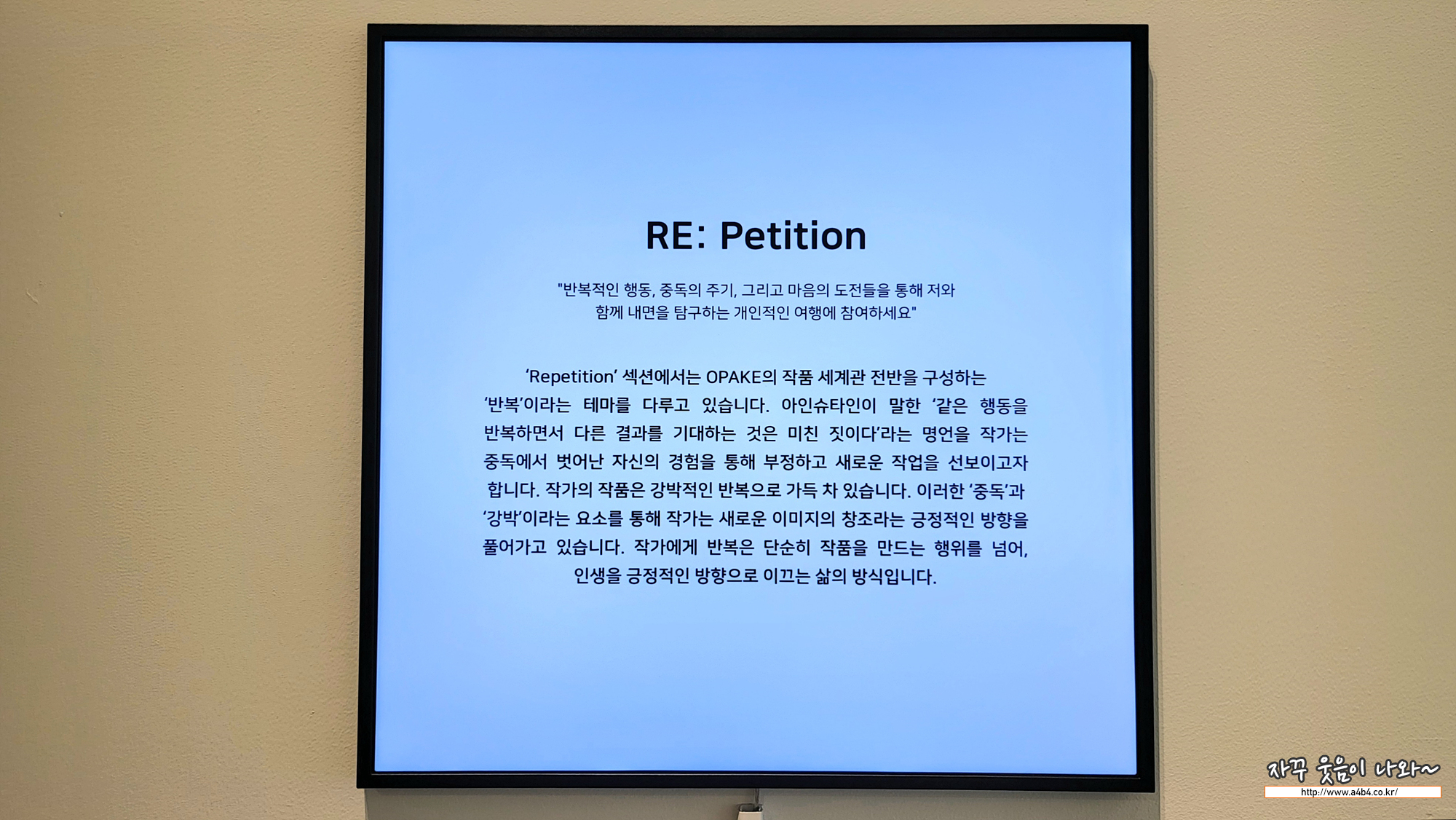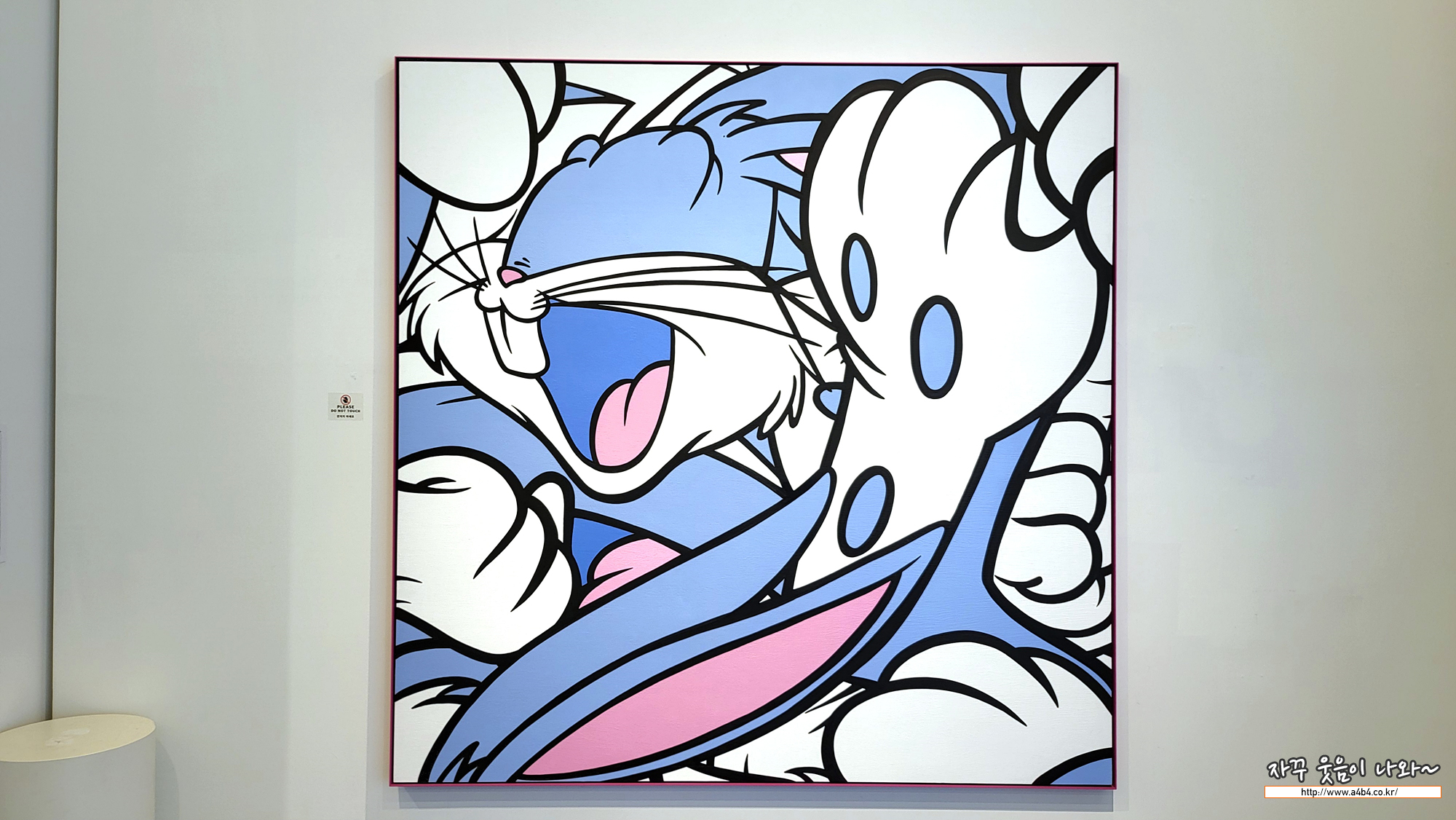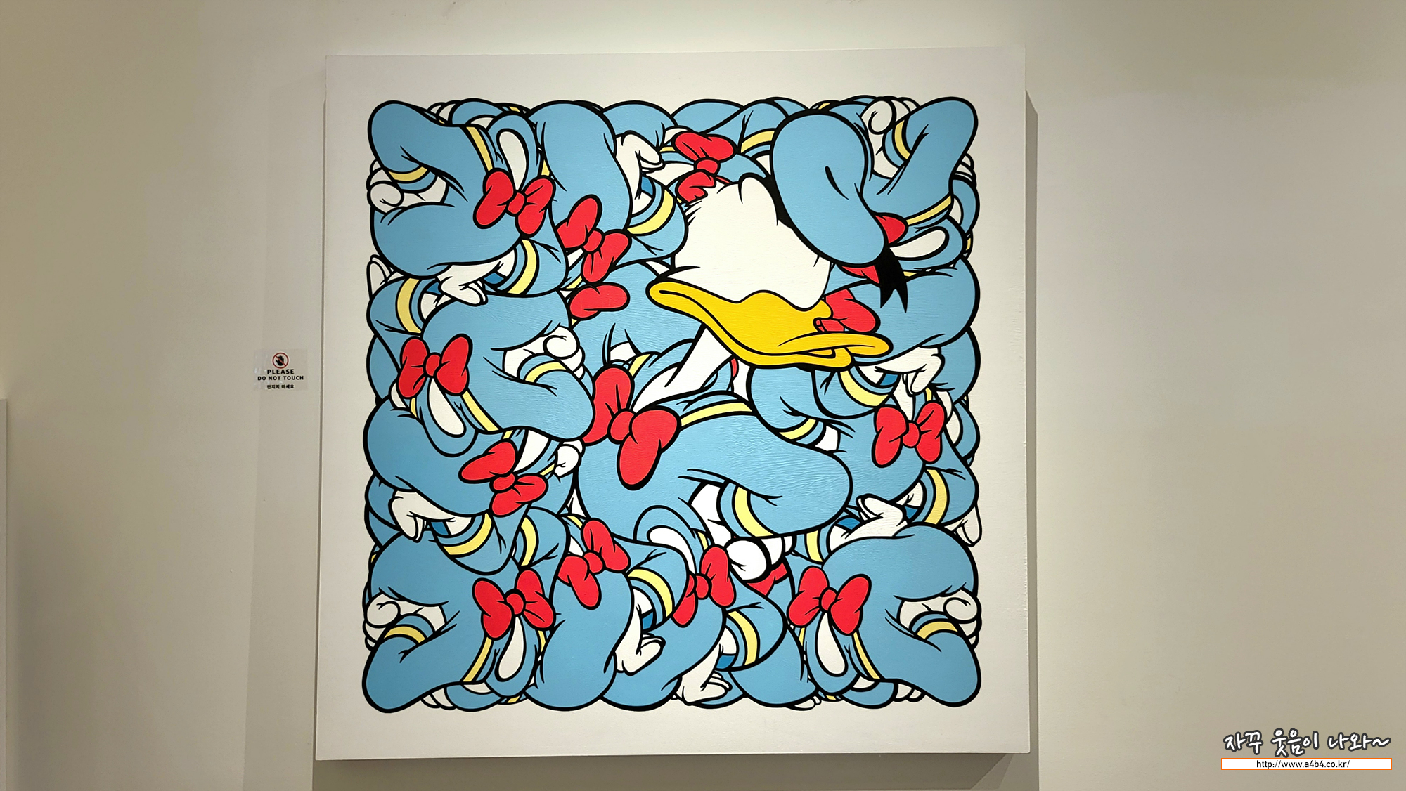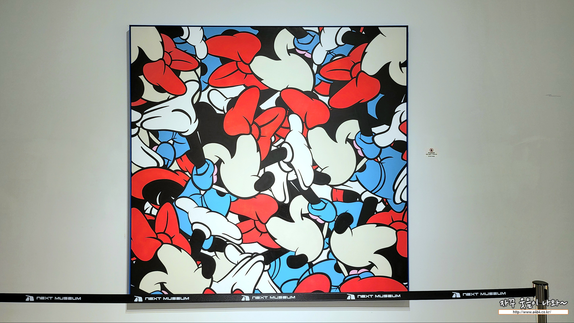이번 롯데월드몰 넥스트 뮤지엄에서 열리고 있는 오페이크 개인적 작품 특징중 하나는 반복되는 패턴속의 캐럭터에 눈이 없다는 것입니다. 이부분은 이번에 전시되고 있는 모든 작품에 공통적인 부분인데요. 그 이유는 글 중간에 자세하게 설명합니ㅏㄷ.