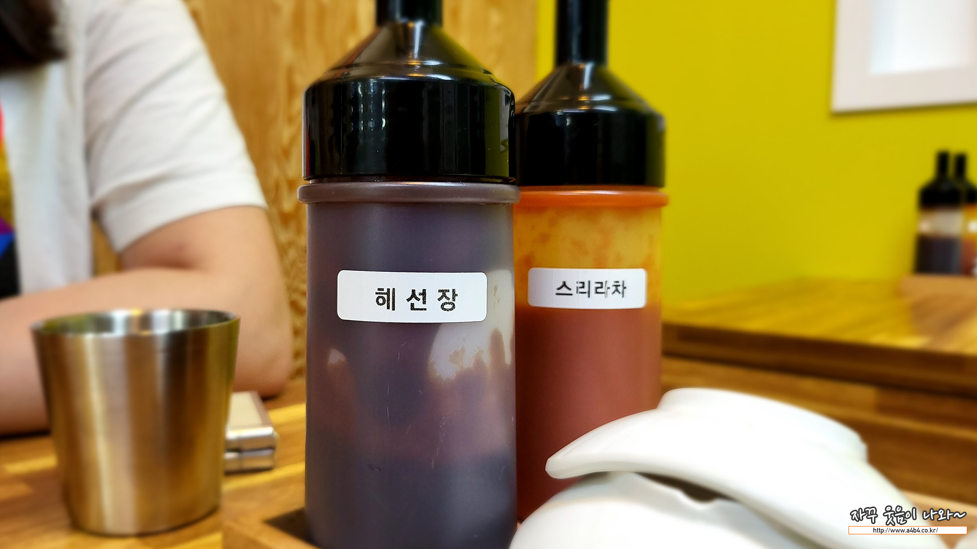 달달한 혜선장소스와 0칼로리 소스로 불리는 스리라챠 소스는 테이블에 준비되어 있습니다.