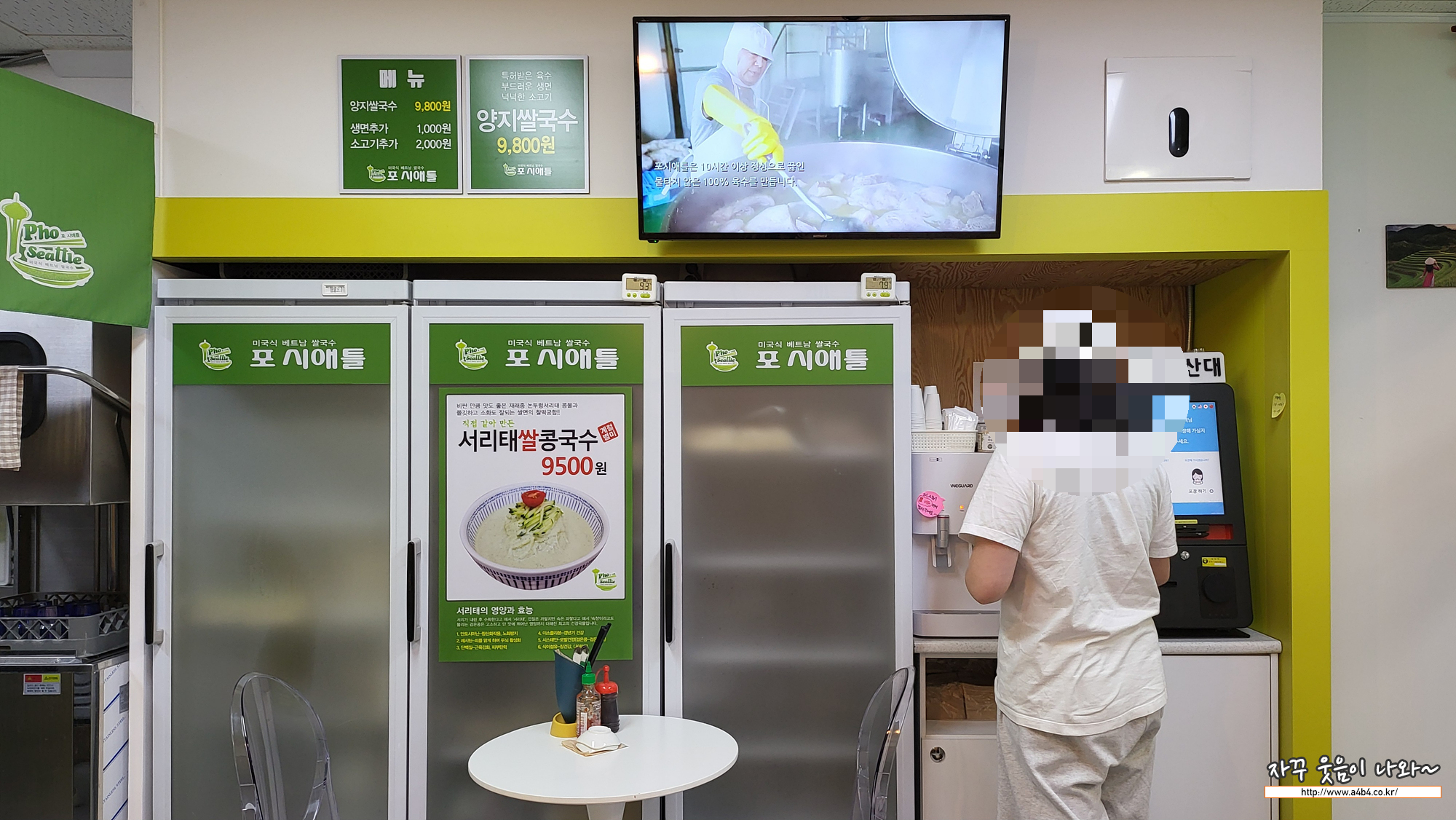 참고로 포시애틀은 프랜차이즈 맛집인데요. 이곳 특징은 불을 사용하지 않고 조리한다는 부분을 강조하고 있습니다. 육수는 끓여서 보온통에 보관하고 면만 뜨거운 물에 풀고 이후 보온통의 육수를 넣고 나오는... 약간 즉석 쌀국수 같은 편의성을 강조하는 맛집입니다. 그래서 가격도 이정도 다운이 가능해 보이는...