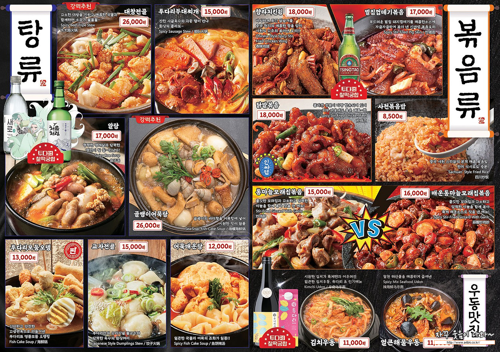 탕류 볶음류 : 김치우동 / 모래집볶음