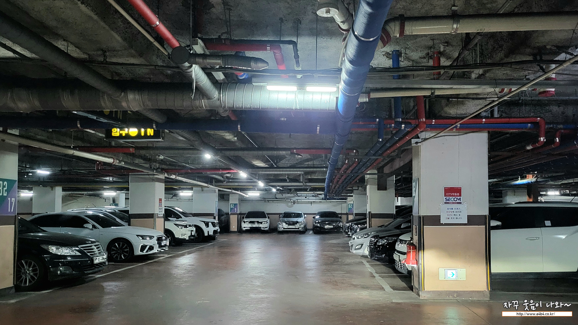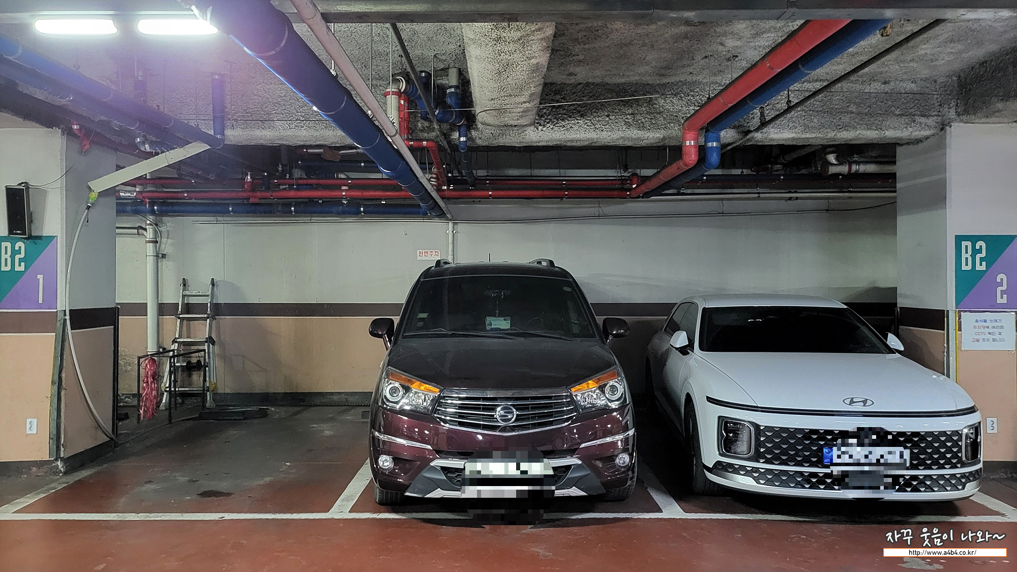 주차구획 간격도 여유있지는 않습니다. 중형차와 중형차가 주차하면 승하차에 다소 불편이 생길 수 있습니다. 문콕 당하기 딱 좋은... 초보운전자 분들은 주의가 필요합니다.