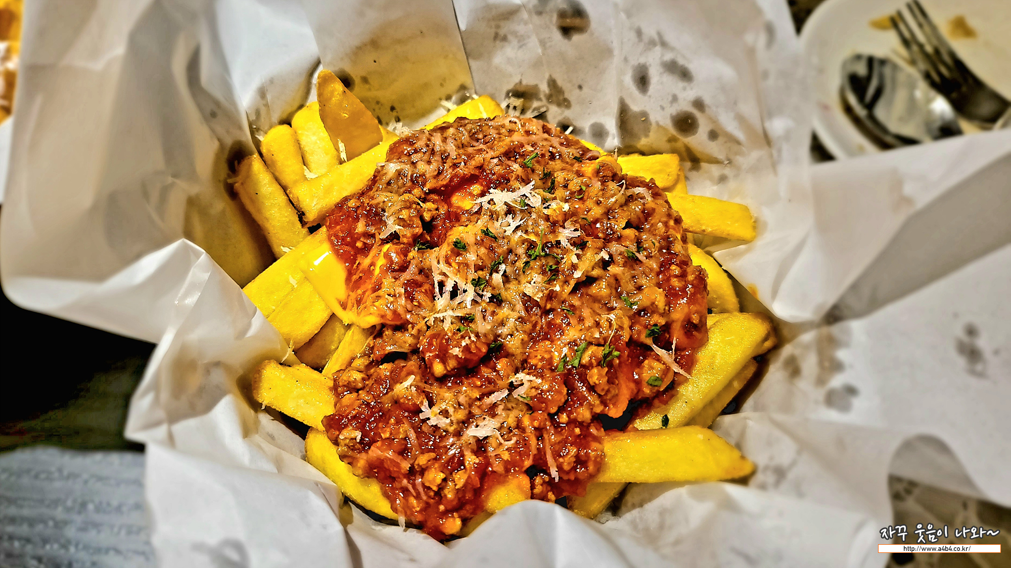 이곳 브런치 가든 계양구청점 볼로네제 치즈 프라이 메뉴는 튀긴 감자위에 올려 있습니다. 전형적인 맥주 안주!!! 대낮부터 낮술 한 잔 할 수 없어서 아쉬웠네요. 차도 가지고 왔고요.
