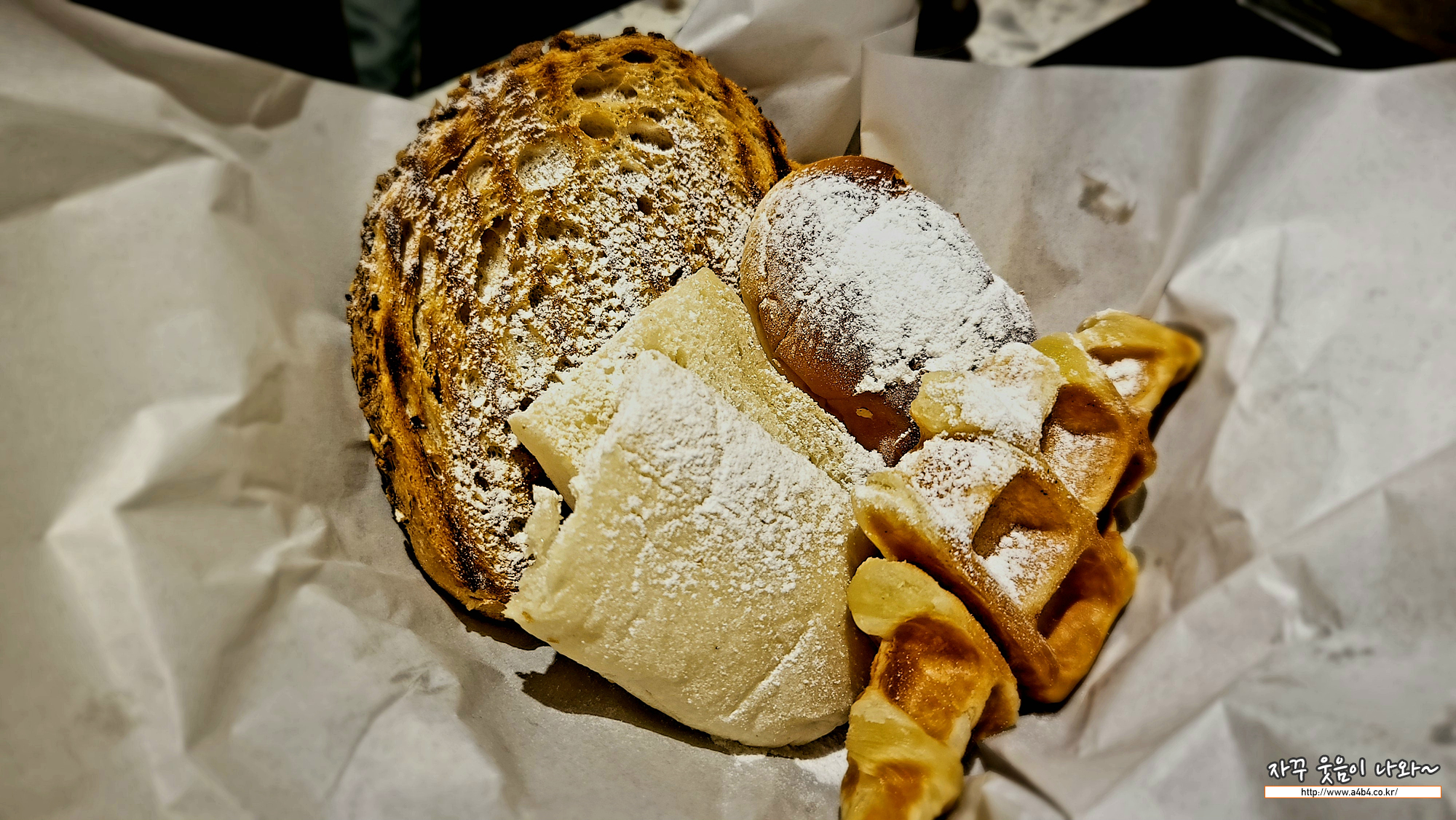 프렌치토스트, 해시브라운, 블루베리, 새송이 버섯 등의 빵류도 같이 나오네요. 상당히 푸짐하고 2~3인이 방문하셨다면 꼭 주문하셔서 나누어 드시는 것을 추천 드립니다