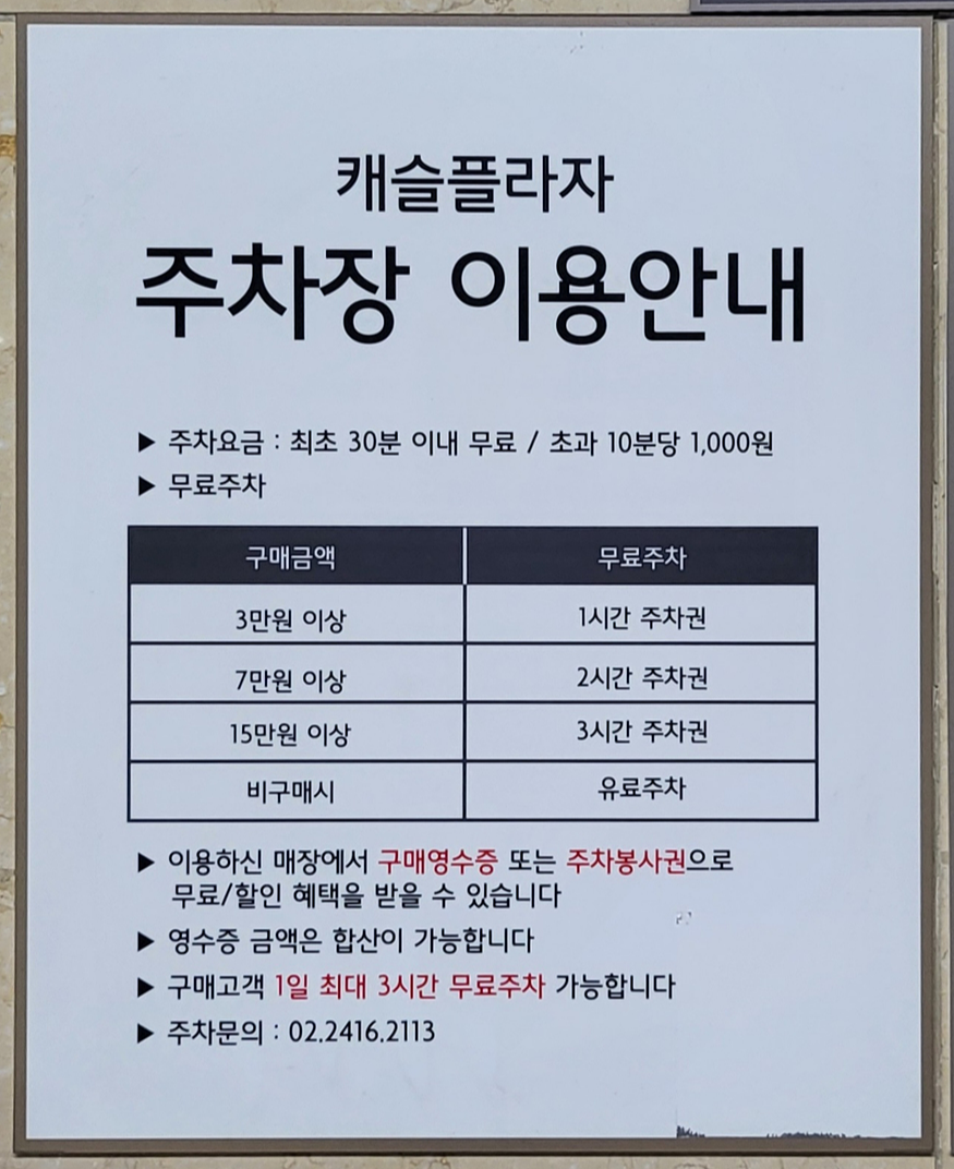 주차는 잠실 롯데캐슬골드 지하 주차장을 이용하시면 됩니다. 다만 상가 방문객 주차장 층별 공간이 적어서 상황에 따라서는 지하 5층... 6층... 주차장까지 내려가야 합니다. 빙빙빙 돌면서...