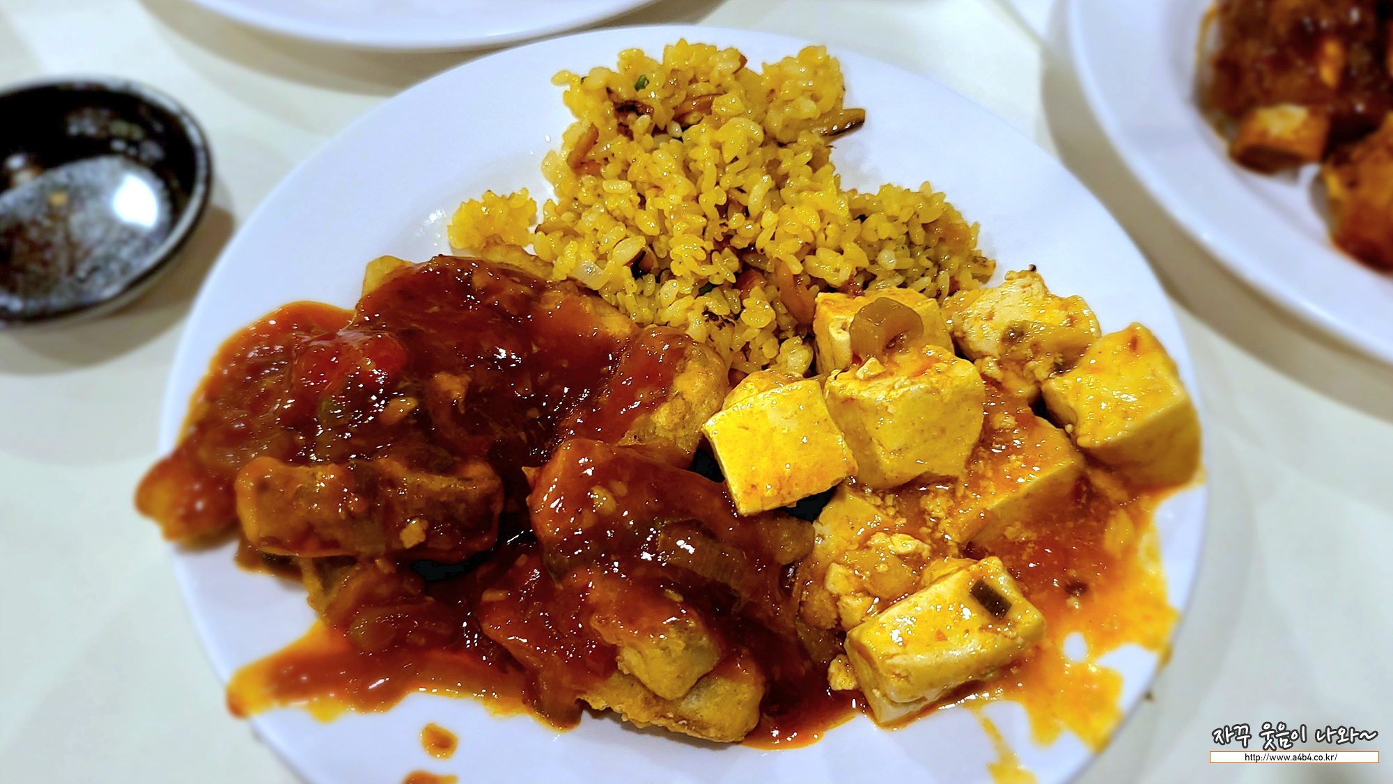 그러나 사진속의 마파두부와 가지탕수와 소스 그리고 볶음밥 조합은 상당히 매력적인 구성이었네요.
