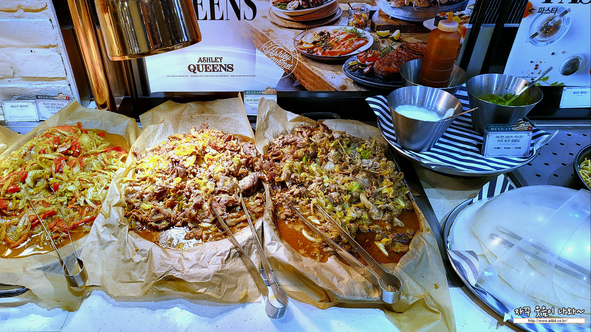 대부분의 중저가 패밀리레스토랑이 그러하듯 애슐리퀸즈 메뉴 중에서도 육류와 튀김요리는 무난합니다. 해산물과 육류 이외에도 각종 음식들이 준비되어 있는데요.