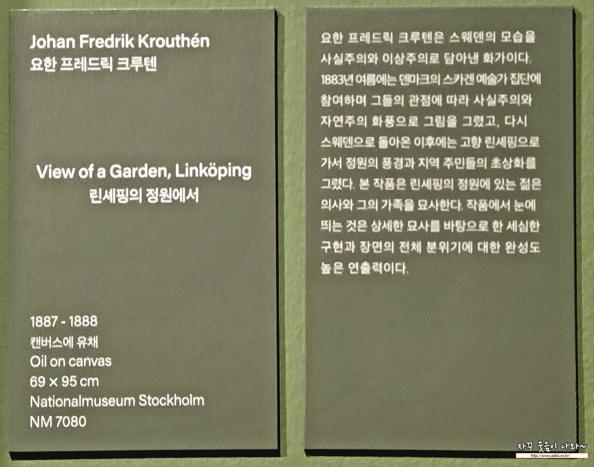 .그린 스웨덴의 화가입니다. 사실적인 표현과 다소 불안정한 구도가 상당히 강렬하게 느껴지는 작품입니다. 이번 새벽부터 황혼까지 - 스웨덴국립미술관 컬렉션 전시회에서 상당히 마음에 드는 작품중 하나입니다.