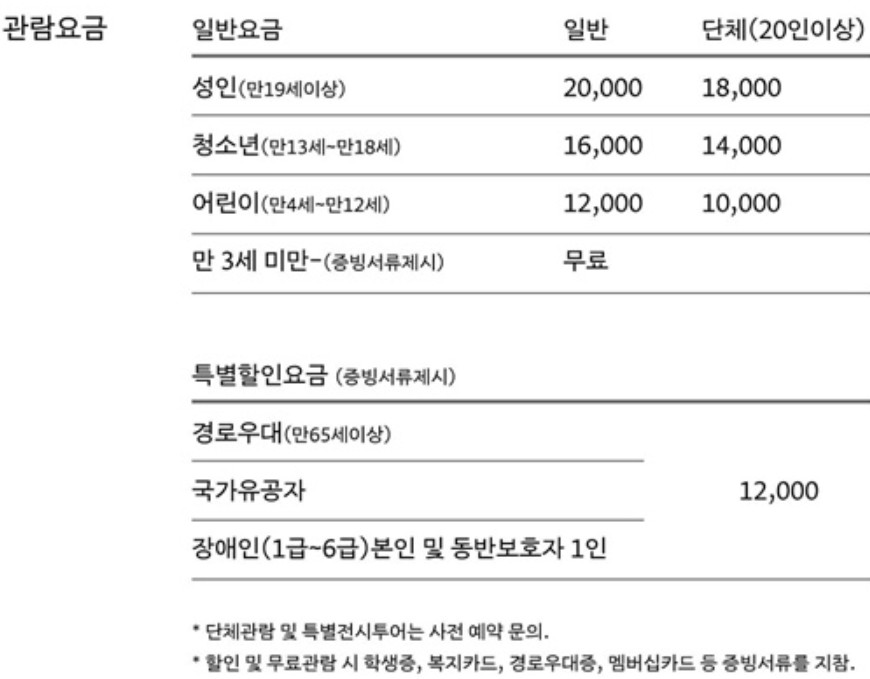 | 관람 요금 및 티켓 할인