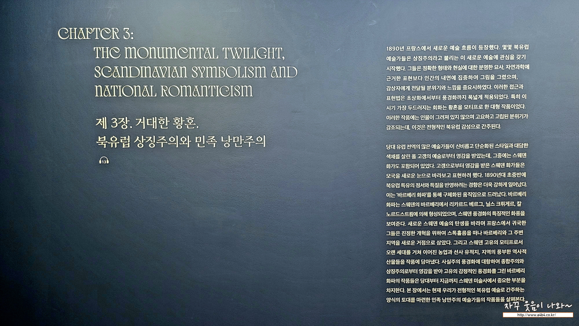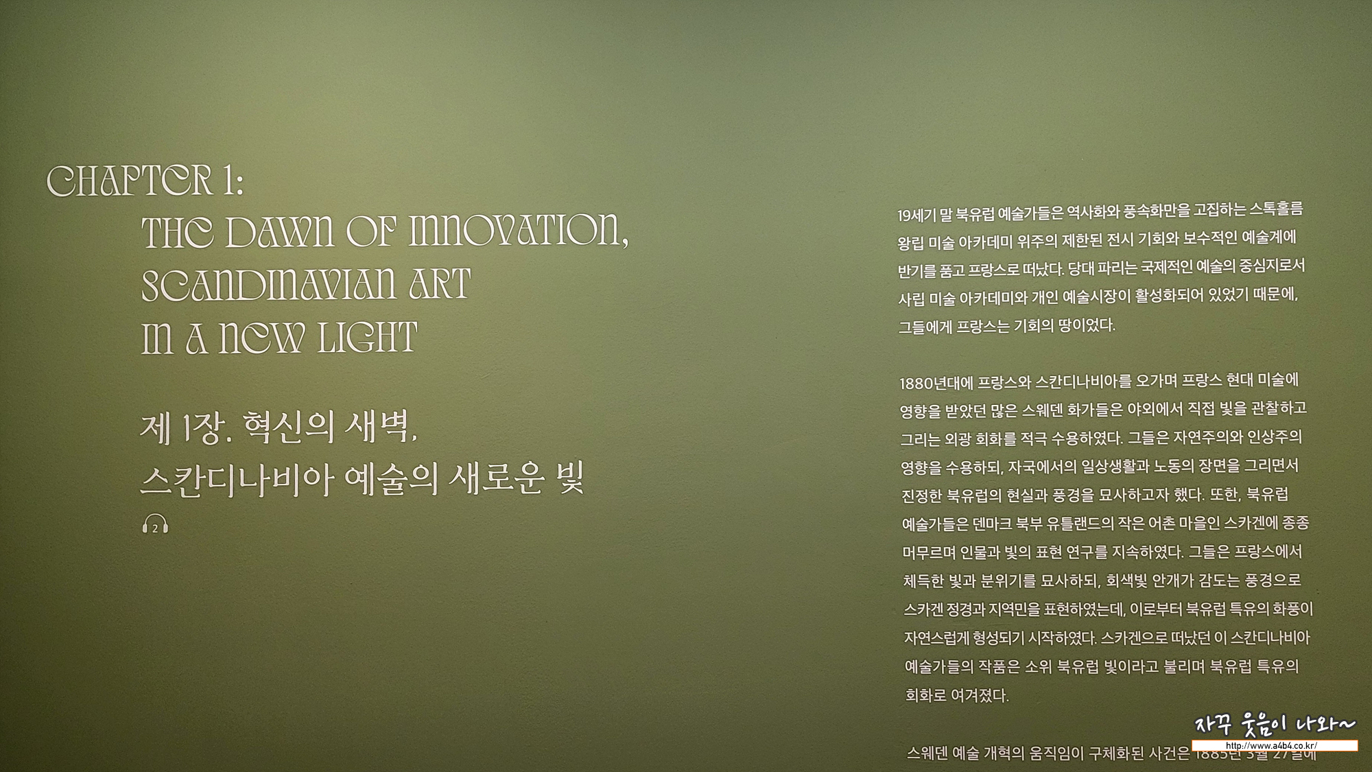 는 당대 젊은 예술가들이 프랑스 등 이국에서 체득한 새로운 화풍을 바탕으로 자국의 모티프와 정체성을 모색해 나가는 여정을 네 개의 섹션을 통해 만나보실 수 있습니다. 예술적 혁신이 동트는 새벽에서부터 성숙기를 맞이한 황혼 무렵, 민족 낭만주의가 무르익을 때까지 북유럽 미술의 흐름을 찬찬히 감상해 보시며, 예술가들의 여정과 발자취를 느껴볼 수 있는 전시회로 저에게는 상당히 낮선 북유럽 미술을 만나볼 수 있는 기회가 되었습니다.