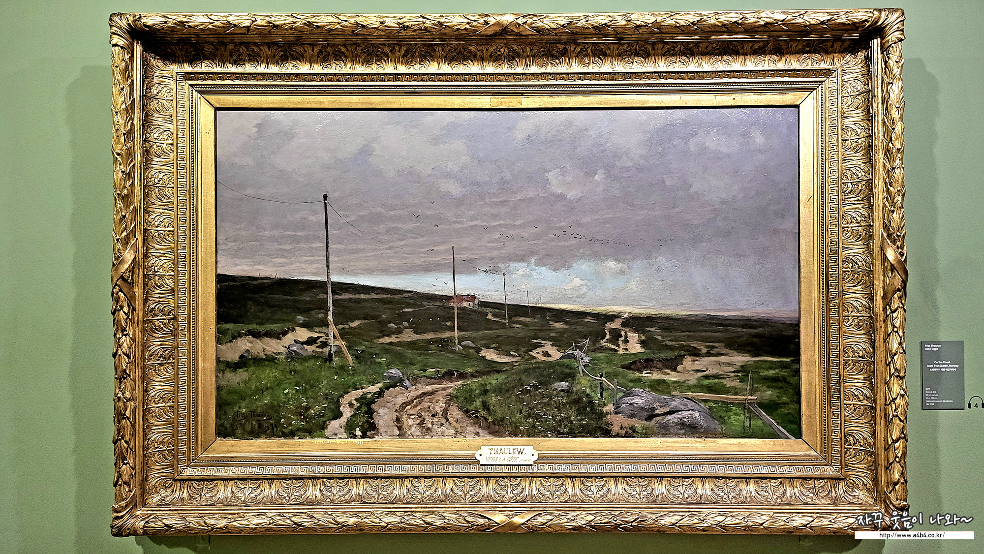 프리츠 타울로는 1880년대 노르웨이 미술의 황금기를 대표하는 화가입니다. 프랑스에서 머무르는 동안 외광 회화에 많은 영 향을 받았고, 그곳에서 크게 성공을 거두기도 했습니다. 이 작품은 자국으로 돌아온 타울로가 노르웨이 남서해안의 예렌에 방 문한 후 이듬해 제작한 작품입니다. 당시 예술가들에게 예렌은 시골 풍경과 해안 풍경에 많은 영감을 주었던 장소였습니다. 타 울로는 예렌의 울퉁불퉁한 해안선을 세심하게 포착하였고, 형태의 묘사보다는 작품의 주제를 선정하는 데 더욱 중점을 두었습 니다. 갈매기들이 앉아 있는 전신주는 당대의 시대성을 반영하고 있습니다.
