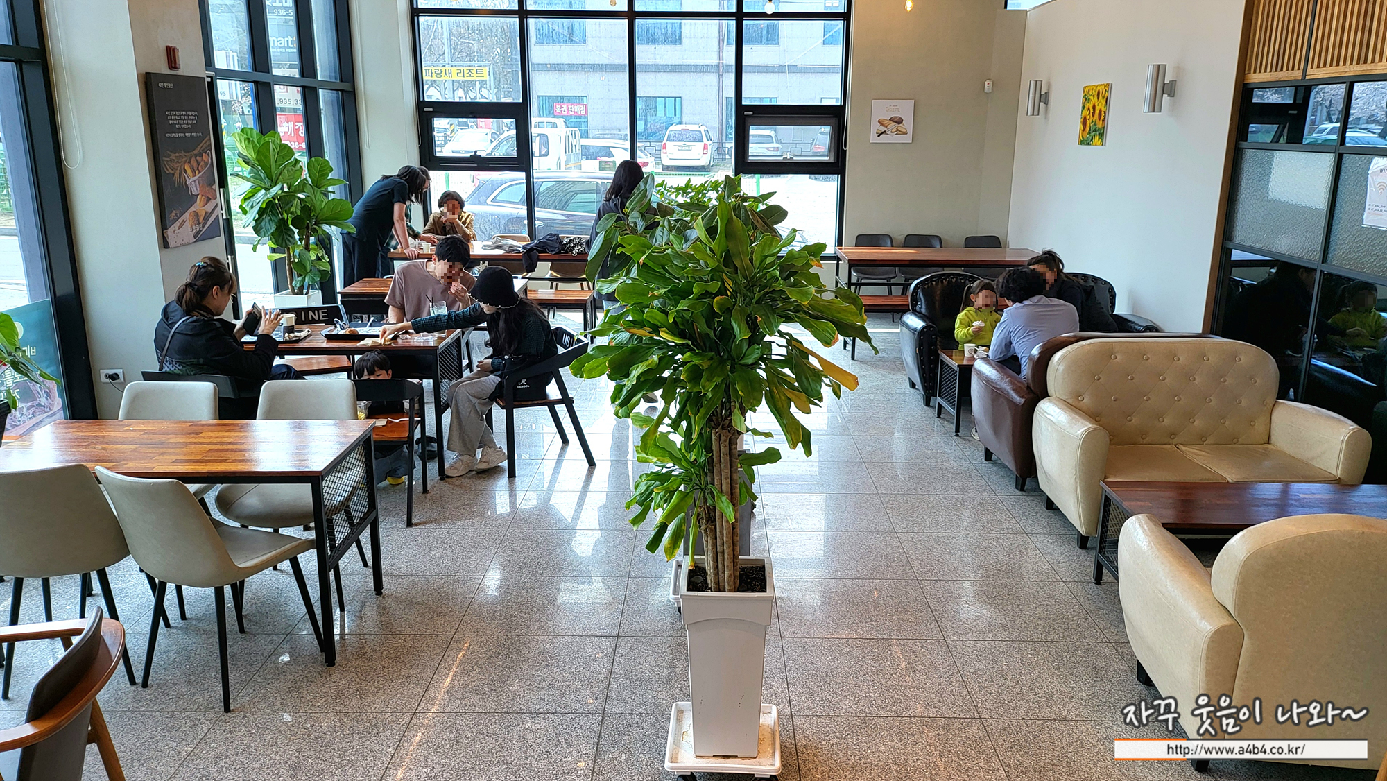 구입한 빵과 음료를 가지고 테이블로 이동합니다. 의자도 편하고 테이블간 간격도 여유가 있어 주변사람 방해받지 않고 편하게 휴식 및 식사가 가능합니다.