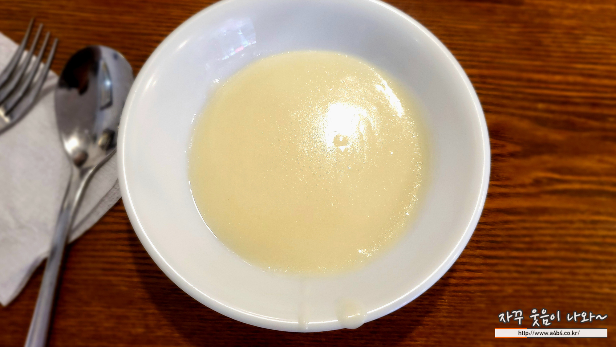 우동 국물도 셀프로 가지고 오시면 됩니다. 위에 튀김가루 같은 것은 없지만 약간 느끼한 튀긴 돈까스에 따뜻한 국물이 잘 어울리는 궁합이네요.