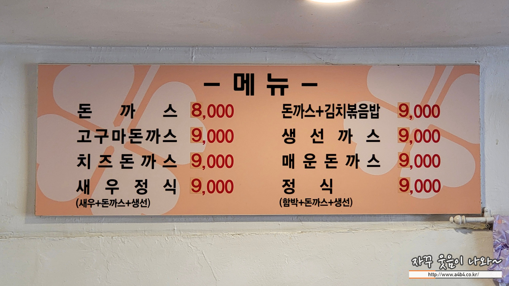한양대학교 맛집 행운돈까스 메뉴 및 가격입니다. 오직 돈까스 한 메뉴로 승부하는 곳입니다. 딱 여덟가지 돈까스 메뉴!
