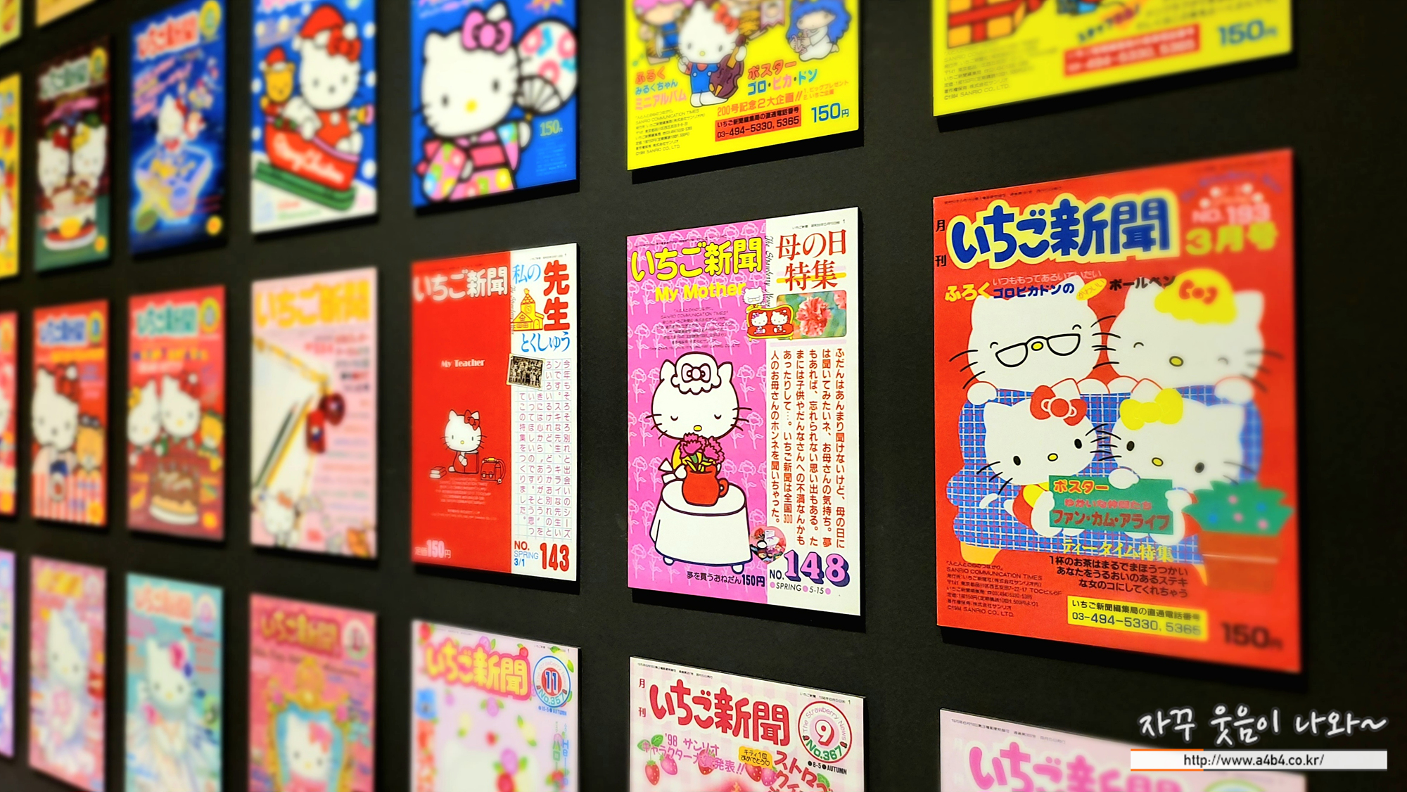 전시장 맨 앞에서 소개한 지금의 산리노와 키티가 있게한 동전지갑 입니다. 물론 복각판으로 봐야할 것 같네요. 키티 동전지갑은 당시 디자인이 충실하게 반영된 버전과 현재까지 다소 변경되고 튜닝된 캐릭터가 적용된 지갑 두 종이 있습니다.