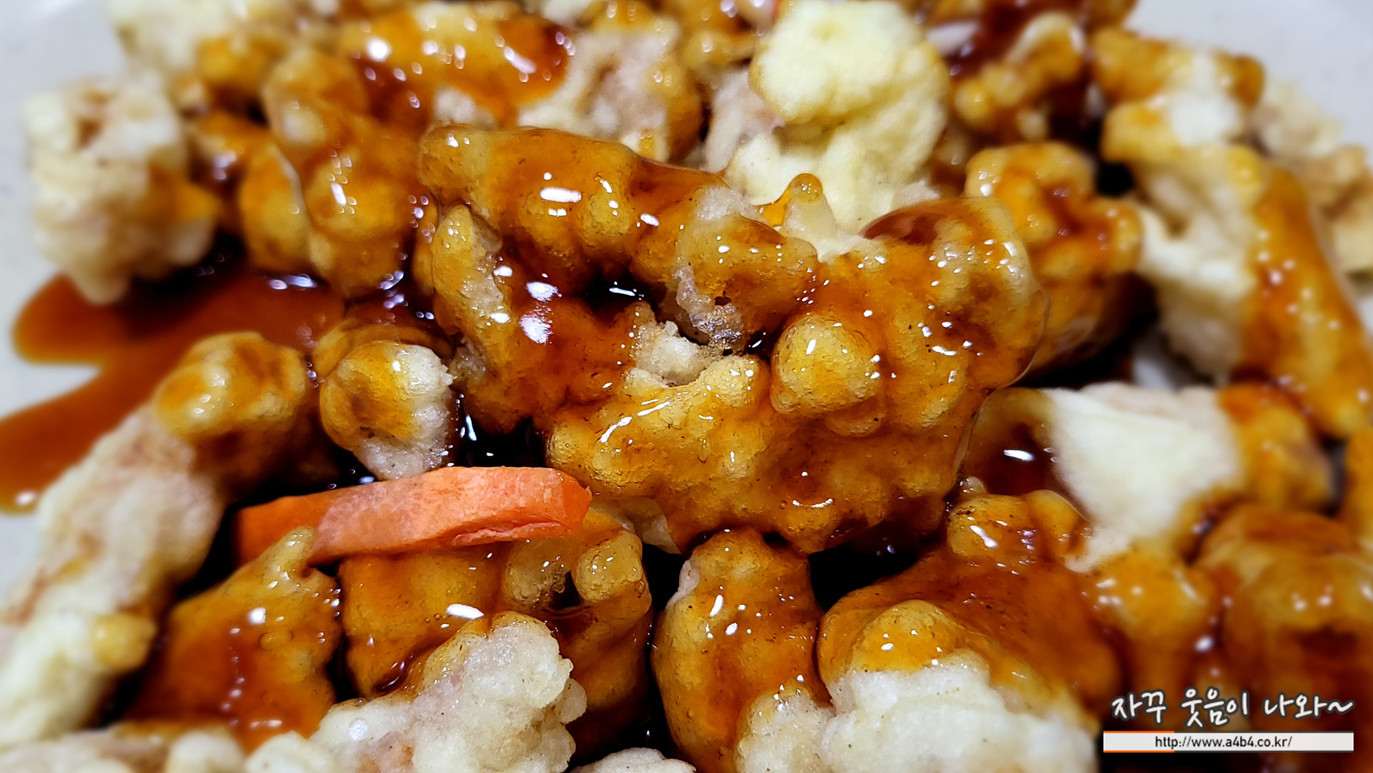 효성각 탕수육을 가장 먼저 추천하는 이유는 튀김상태도 좋지만 식감도 상당히 좋습니다. 누지지 않고 바삭바삭한 식감과 고기 육즙이 살아 있습니다. 시간이 지나도 바삭한 식감이 잘 유지되네요.