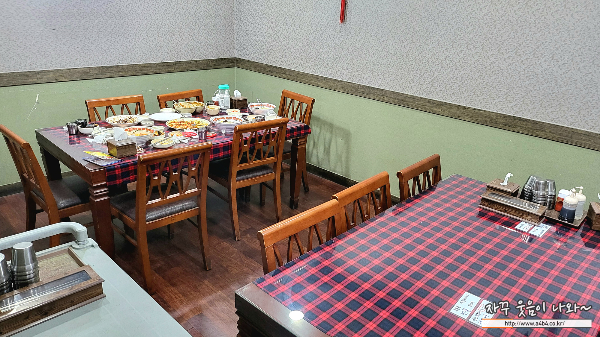 화정동 맛집 중국집 효성각 실내입니다. 6인 테이블 기준으로 홀에는 약 다섯 개, 룸에는 두 개의 테이블이 있습니다. 작고 오래된 중국집의 일반적인 실내를 보입니다. 낡았지만 그 안에서 최선(?)을 다해 깨끗하게 유지하고 있는...