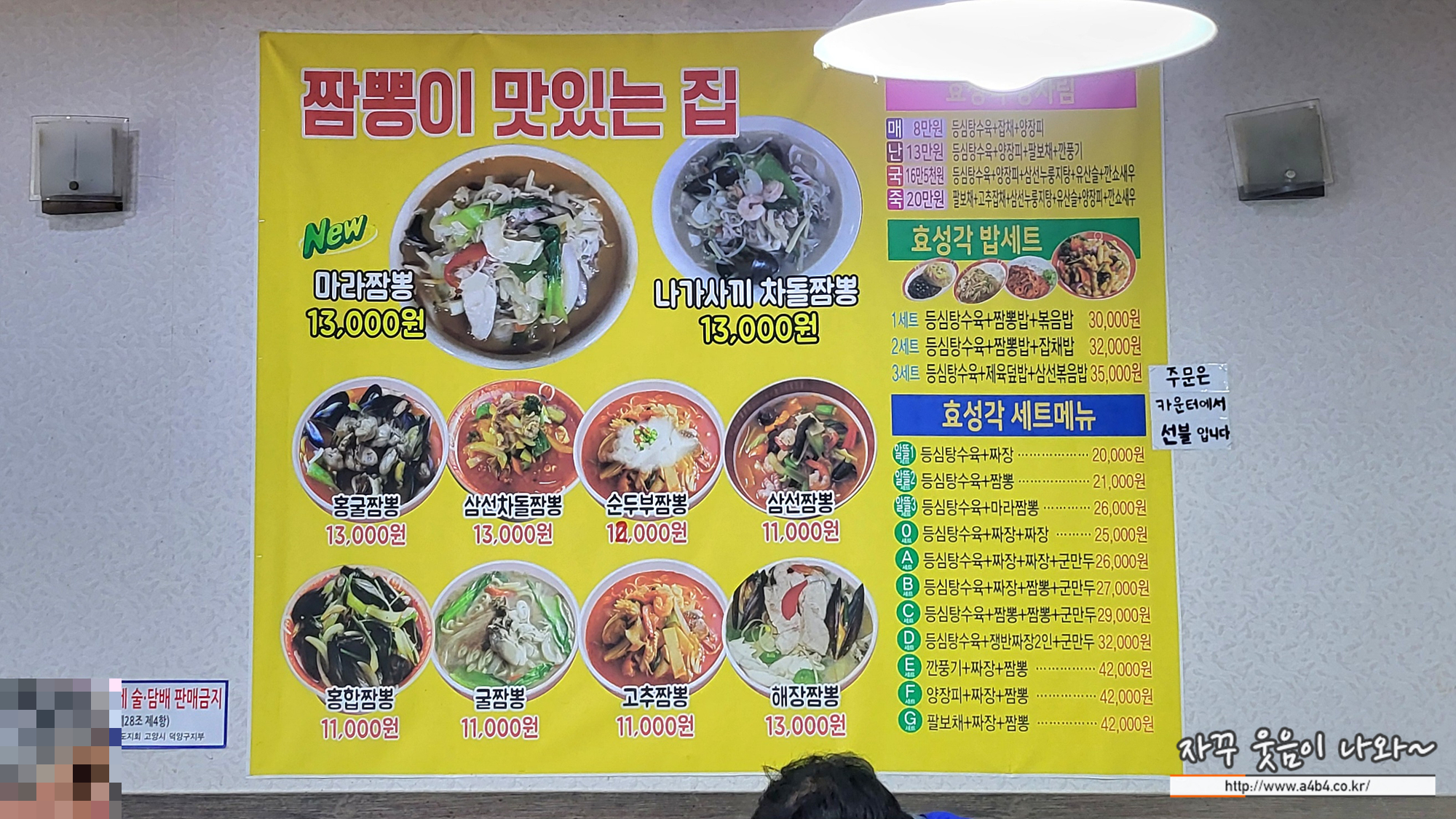 효성각은 '짬뽕이 맛있는 집' 으로 10여종의 다양한 짬뽕을 맛볼 수 있는 곳인데요.