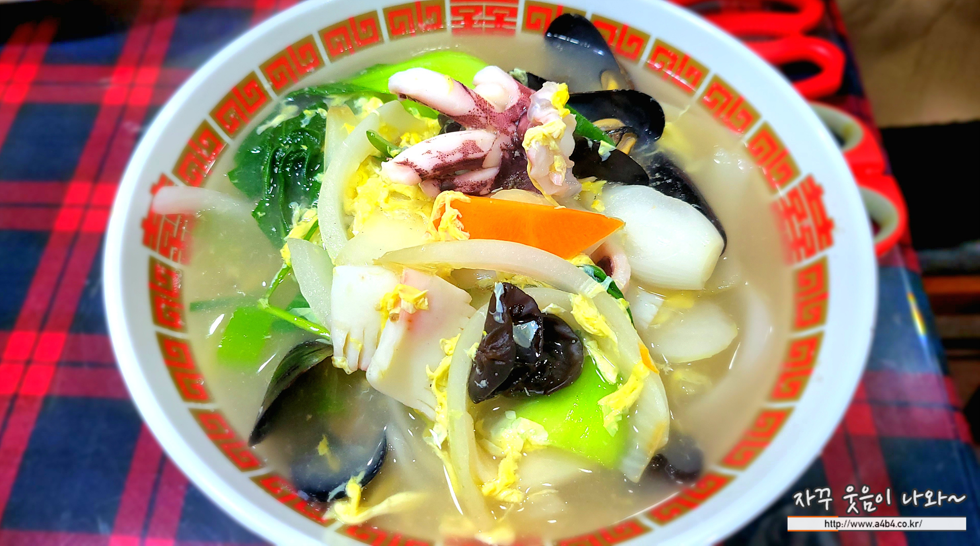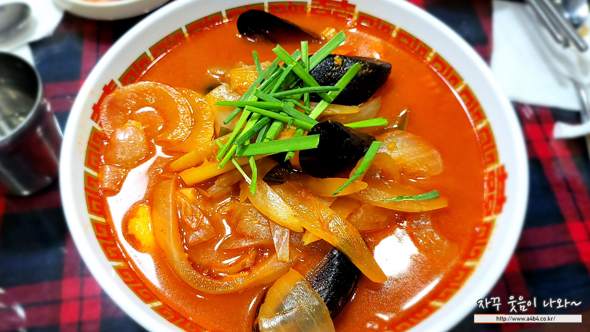 홍합, 양파, 오징어 등 가장 기본적인 재료로 만들어진 짬뽕인데요.