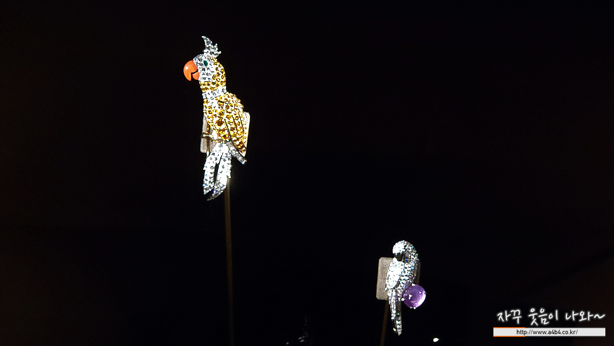 사진과 같이 실내는 상당히 어둡습니다. 사진은 밝기를 조금 올렸다고 생각하셔야 하네요. 물론 작품에 집중할 수 있도록 유리상자속 작품에는 충분한 조명이 들어오고 있습니다만, 반짝이는 보석과 강한 조명 대비로 작품에 촞점이 잘 맞지 않는 것은 물론 노출 맞추기도 쉽지 않습니다. 사진에 꼭 필요한 분들은 DSLR이나 미러리스 카메라 필요합니다.