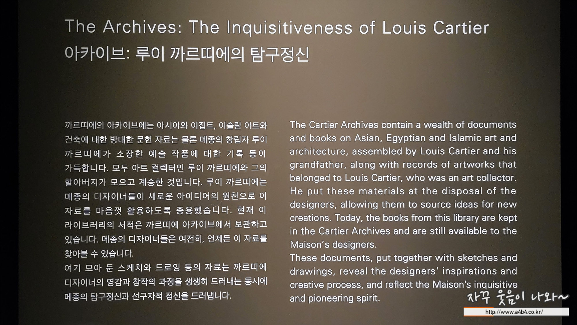 긴 소개 마치고 지금부터 까르띠에, 시간의 결정 전시회 7개의 공간 소개시작 합니다.