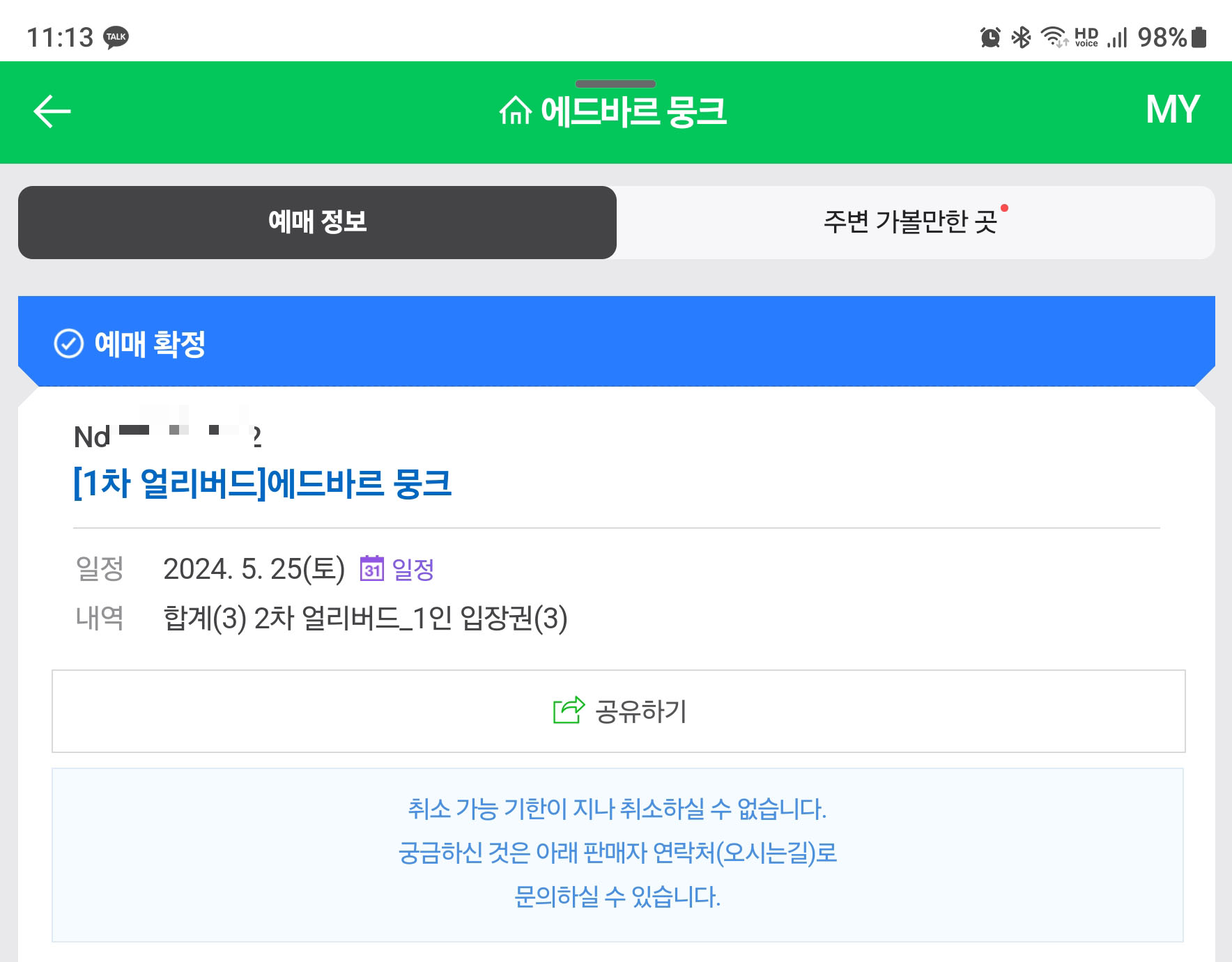 이번 에드바르 뭉크 전시회 예약은 일반적으로 전시회 기간동안에 사용이 가능한 예매방식이 아닙니다. 마치 공연이나 영화 예약과 같이 방문일자를 지정하고 예매해야 합니다. 예매 취소도 당일 취소는 불가능하니, 개인적인 일이 생기면 티켓가격만 날리게 되네요. 차라리 관람당일 현장 예매를 하세요.