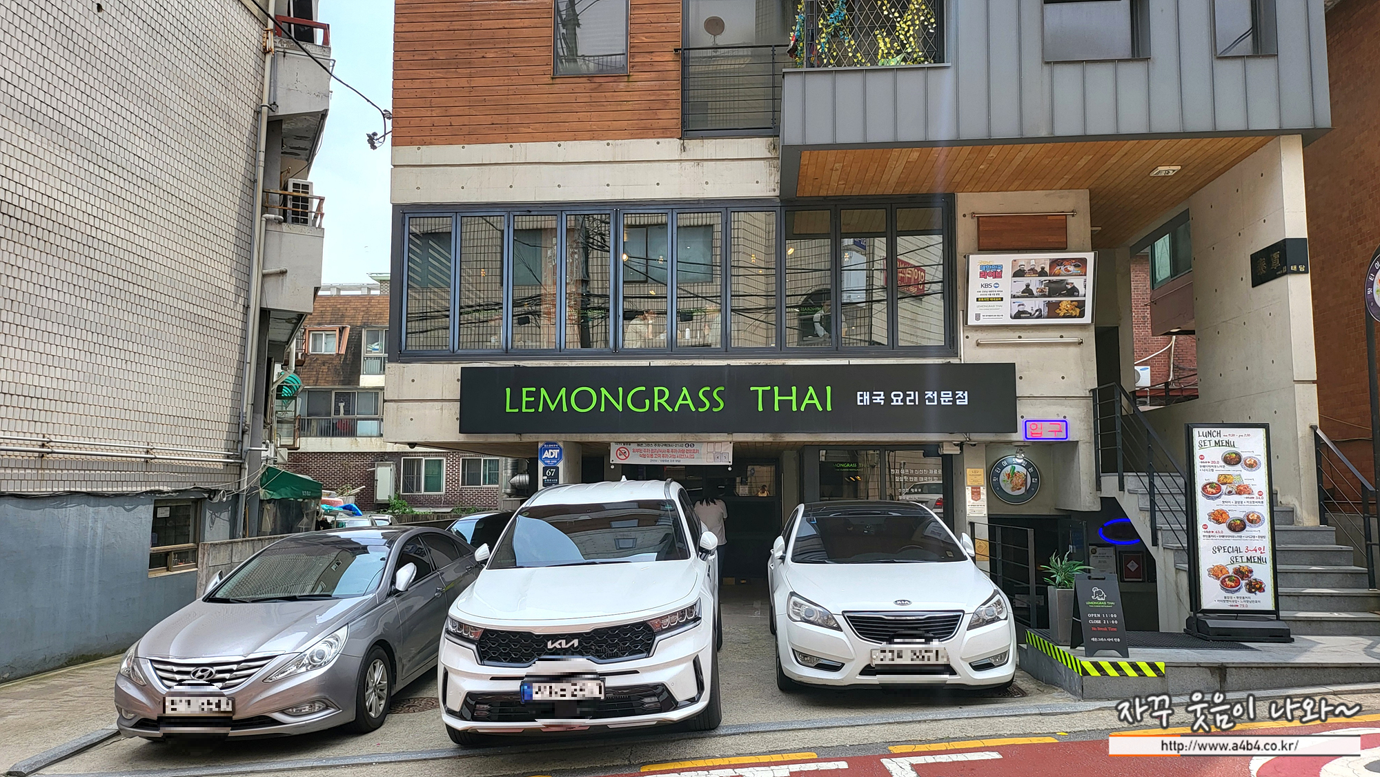 건물 오른쪽 반지하로 내려가시면 됩니다. 레몬그라스타이 남부터미널 점은 1층과 2층에 매장이 있고요. 평일에는 주변 회사원들이 방문을 많이해서 그런지 1층과 2층 모두 영업하고 있는데요. 주말에는 2층만 운영하고 있습니다.