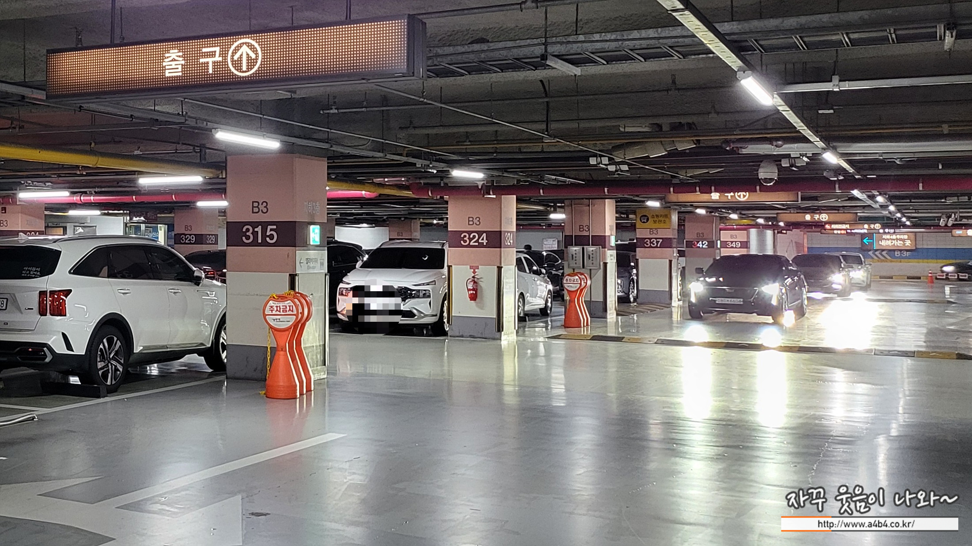 저는 12시 결혼식이었는데 오후에 출차하려 보니 지하 3층 주차장은 다소 복잡한 모습을 보이고 있습니다. 지하 4층으로 내려가시면 오히려 여유있고 엘레베이터와 접근성 좋은 주차자리를 확보할 수 있을 것 같네요.