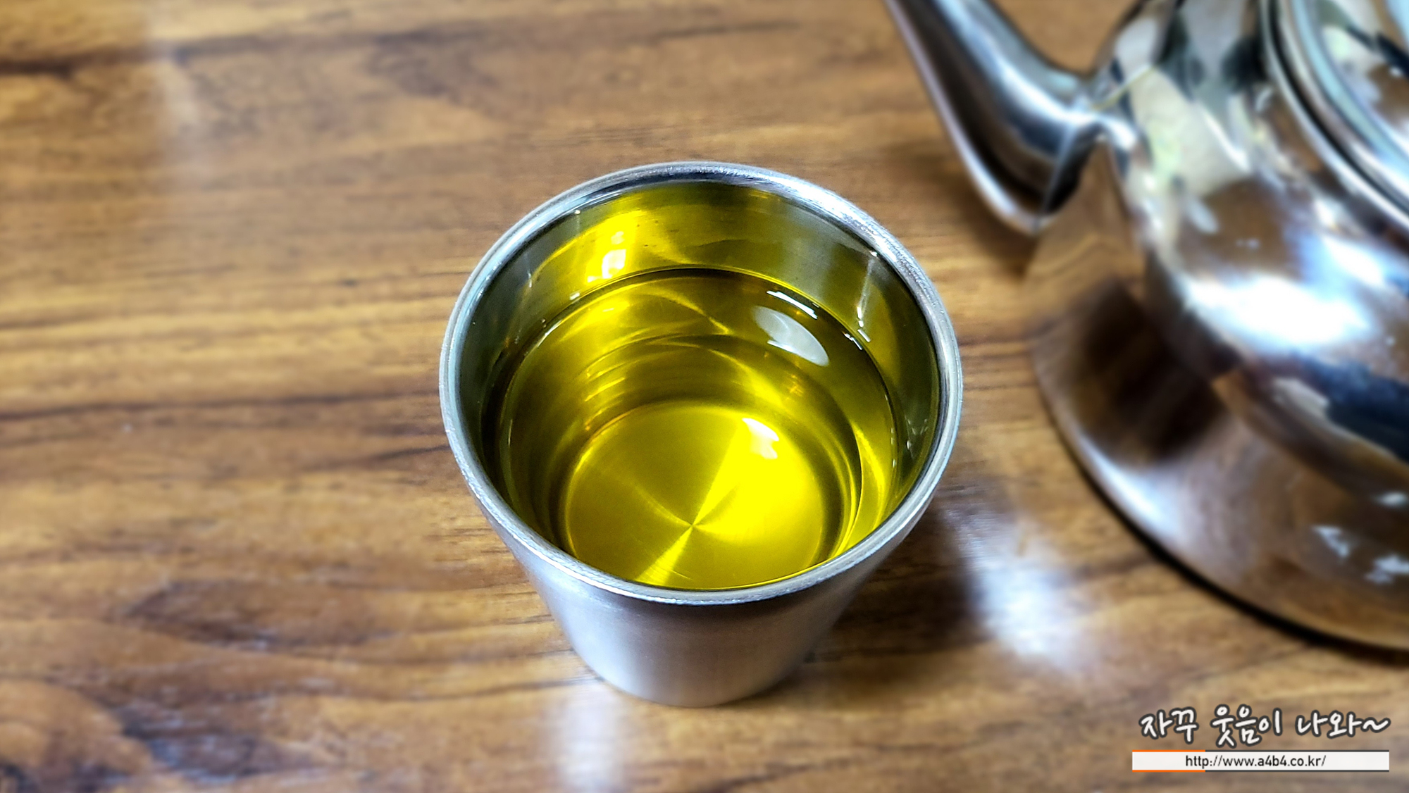 여름에 뜨거운 보리차가 나오네요. 물론 찬물도 있고요.