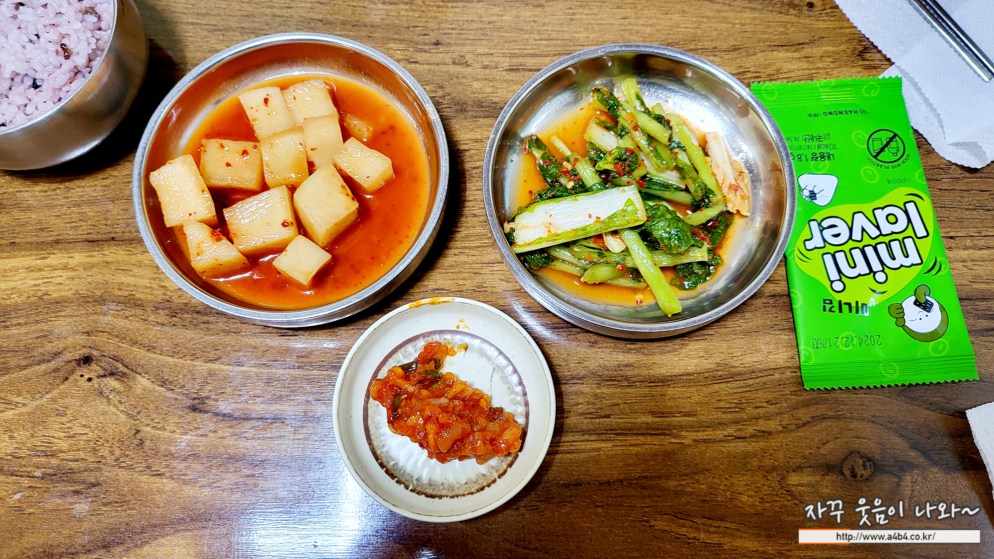 반찬은 열무김치와 깍뚜기, 오징어젓갈, 김이 나옵니다. (김은 아마도 메뉴에 따라 가변적일 듯)