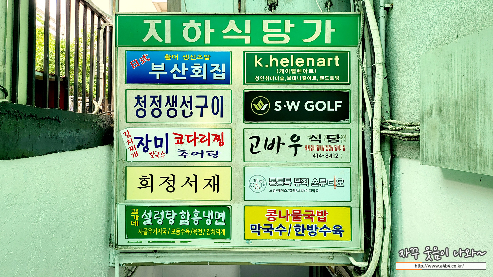 위치는 잠실나루역 3번출구앞 장미전철상가 지하 1층 식당가에 있습니다. 지하 1층에는 국밥집과 설렁탕 / 냉면, 횟집, 코다리 추처탕, 생선구이, 횟집 맛집이 있는데요. 무슨 연유인지 식당별 특색도 없이 메뉴가 다 섞여 있네요.