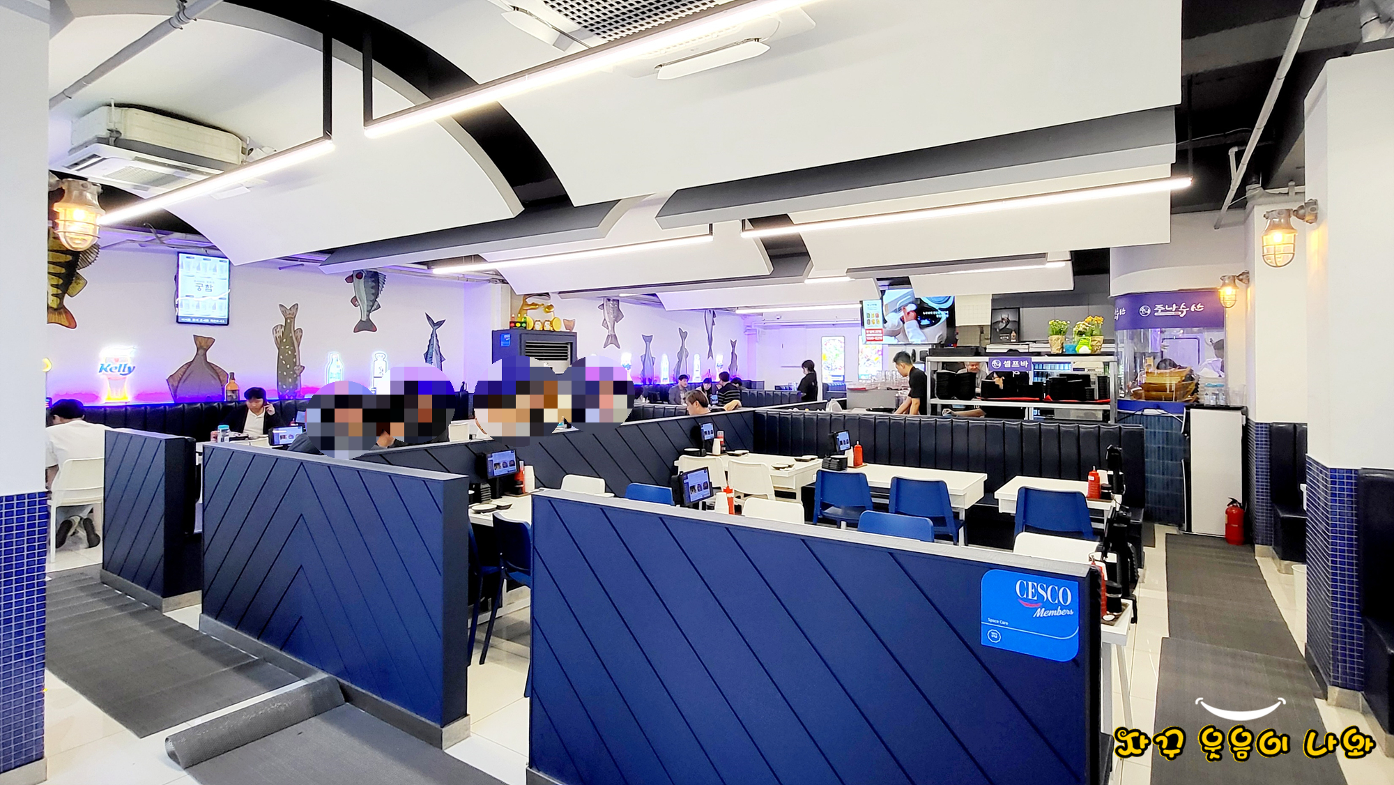 입장하는 블루컬러의 시원한 인테리어가 눈에 띄네요.