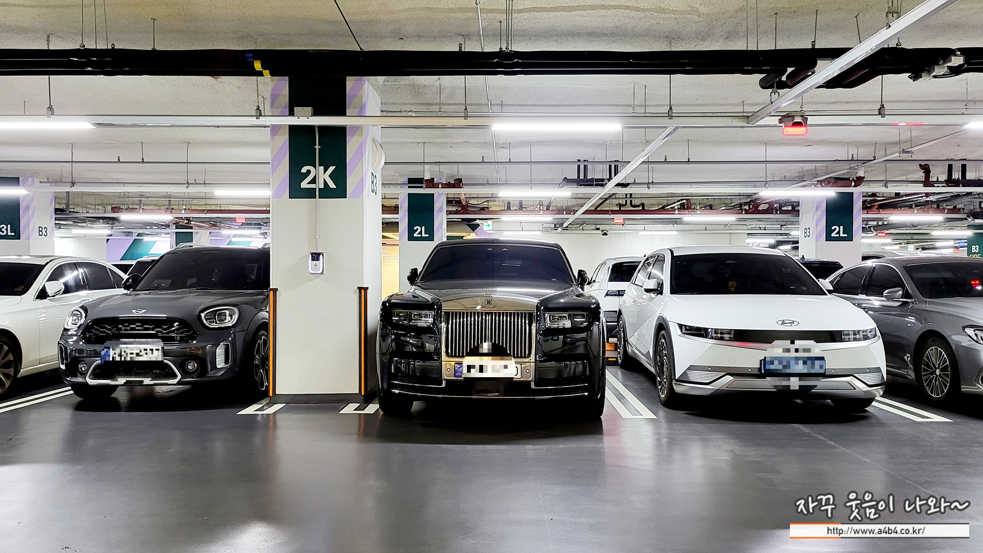 무엇보다도 주차장 간격이 매우 여유있게 나뉘어 있어 대형 차량이 있어도 쉽게 주차가 가능하고 승하차에도 불편이 없습니다. 아래 보시면 상당히 여유가 있네요.