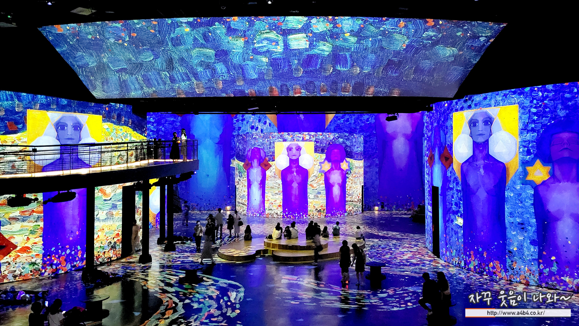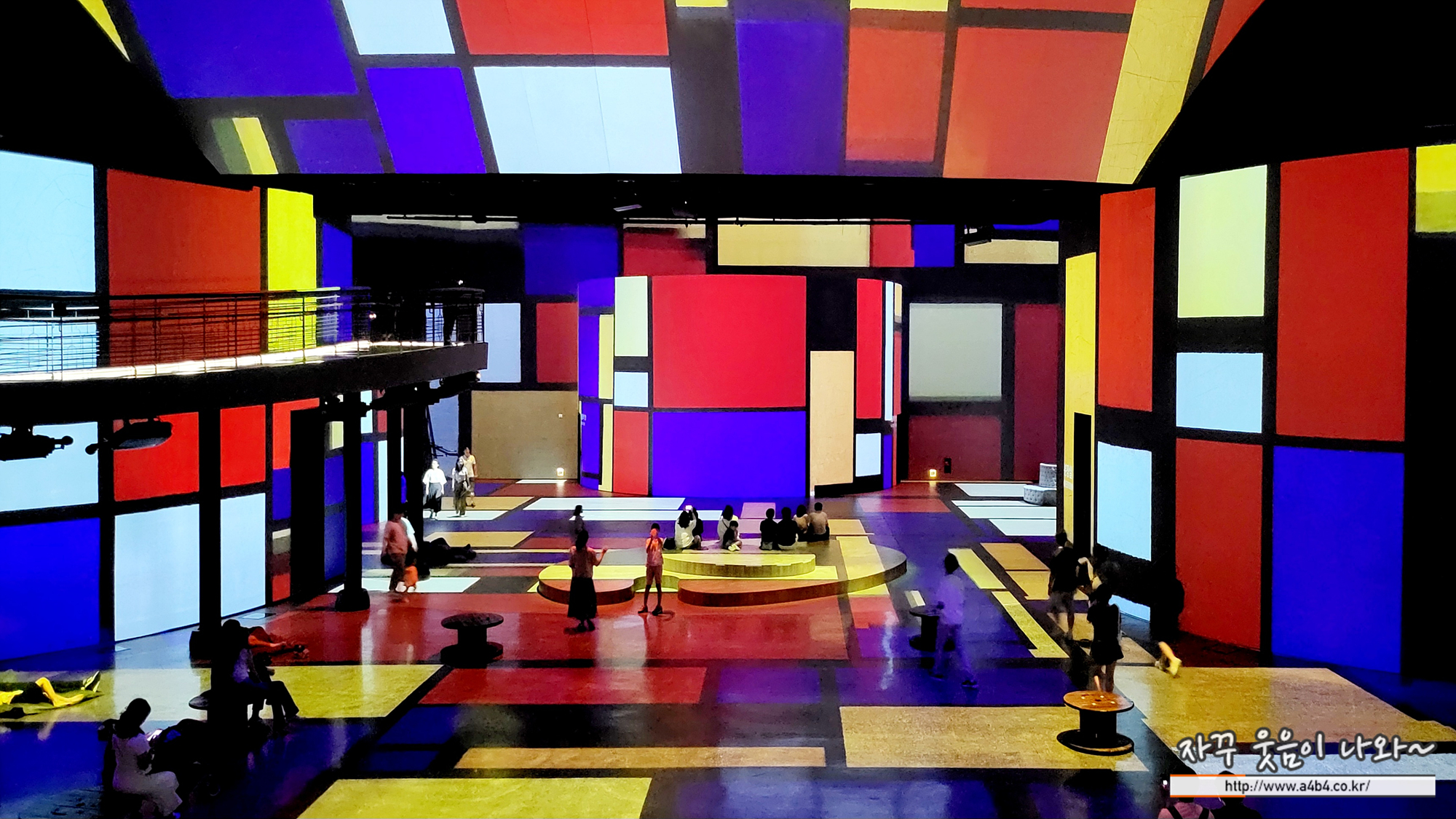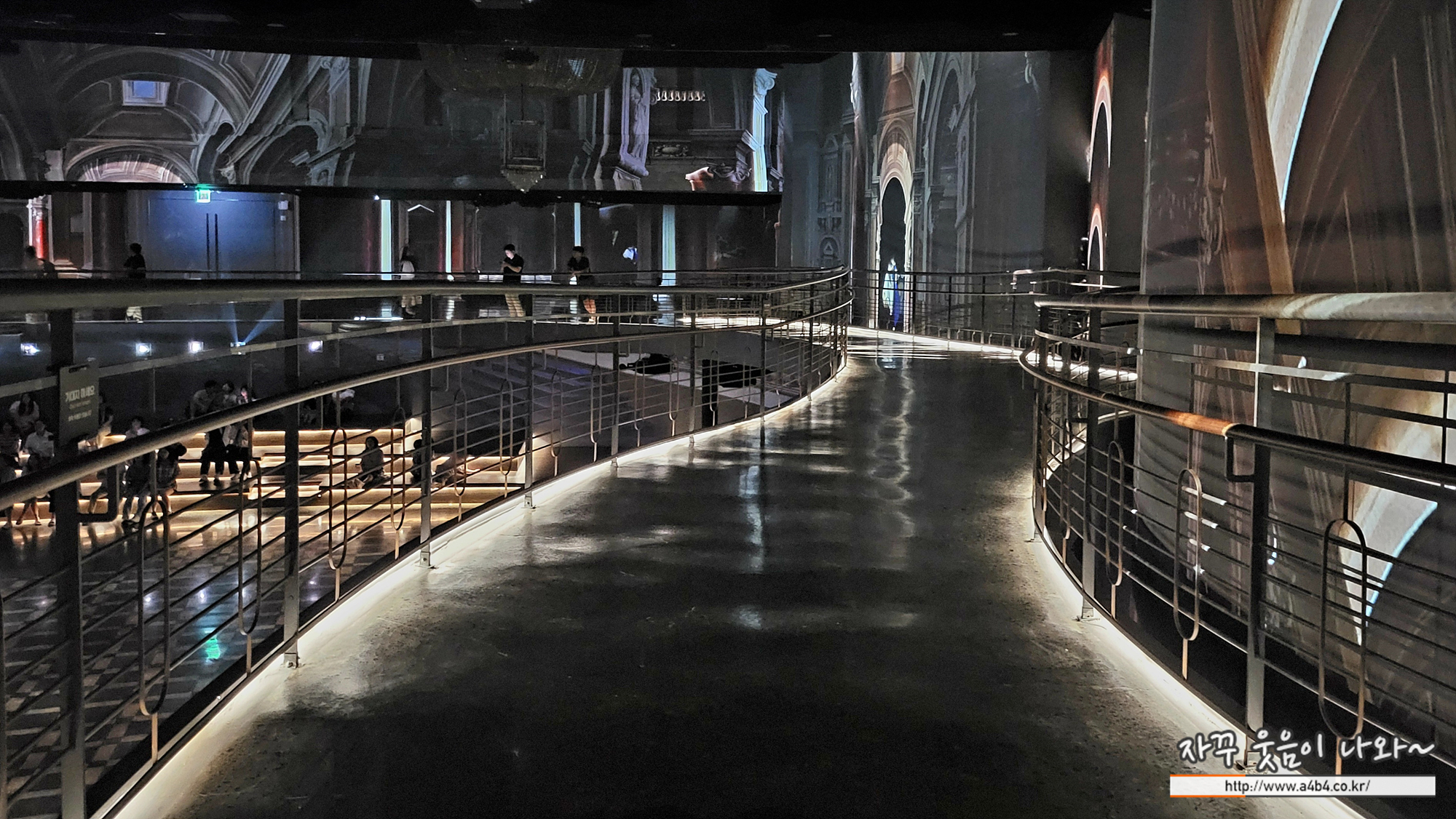 있습니다. 멀티미디어 작품의 전체적인 흐름과 아랫층의 관람객들의 모습을 함께 감상하는 즐거움이 있습니다.