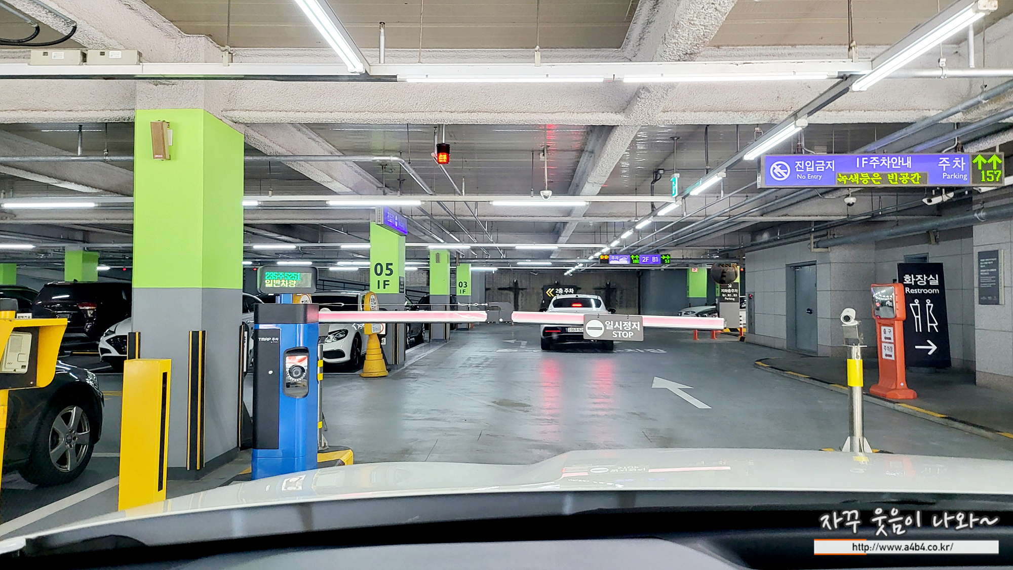 주차장 진입은 지하 1층으로 하게 되는데요. 위로 올라가지 마시고 지하 3층까지 내려 가세요.