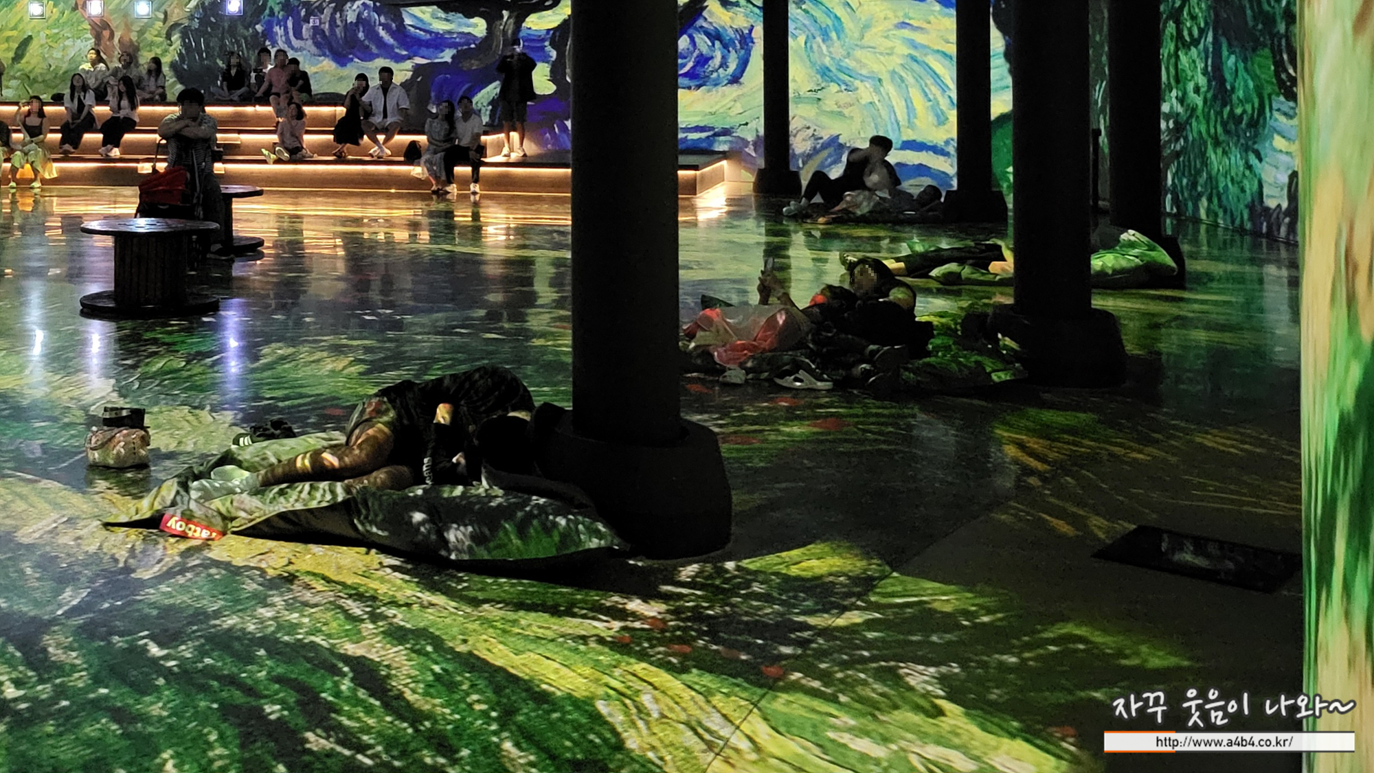 전시장은 한 곳에 고정되어 관람하는 방식은 아닙니다. 이렇게 이동하면서 가끔씩 앉아서... 때로는 누워서 작품 감상하시면 됩니다.