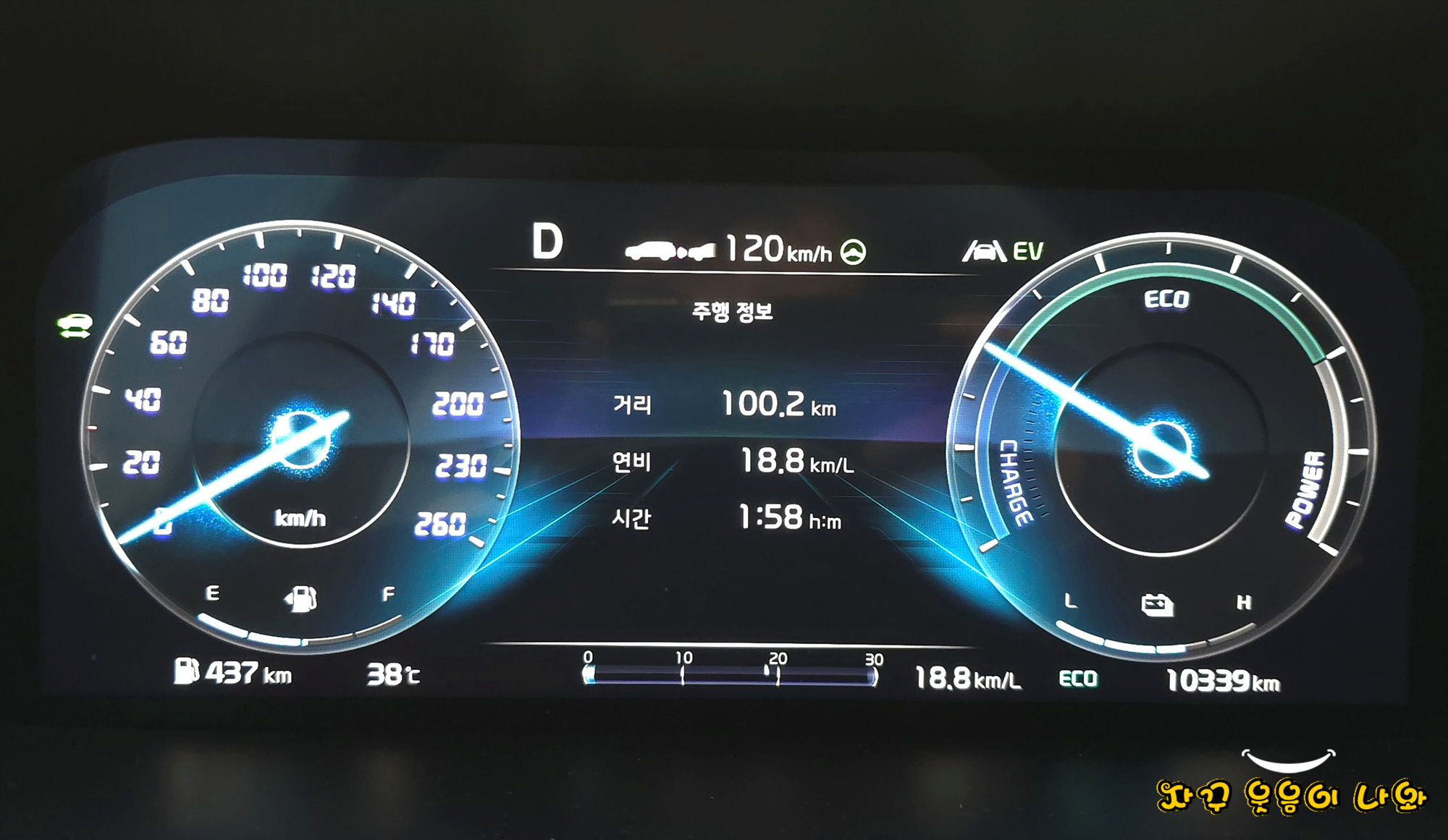 15년 거의 기계식 차량인 스포티지를 운행하다 변경하니, 디지털 계기판, 오토홀드, 크루즈, 후방 카메라 등은 신세계네요. (다만 후진시에는 아직도 카메라 보다는 눈에 의존하는... 30년을 그렇게 운전 했으니...)
