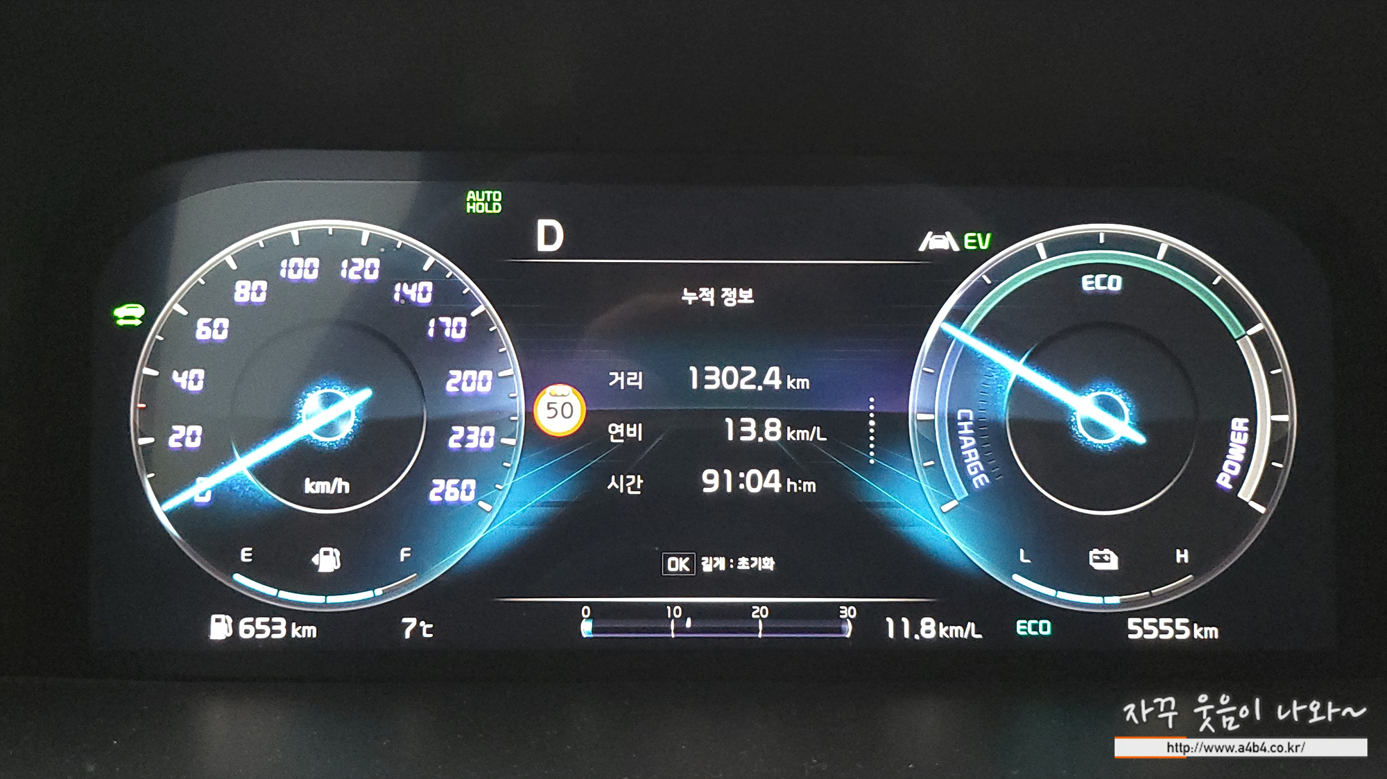 5,000km 인증을 못해서 5,555km 주행후 연비입니다. 중간에 조작 실수로 총 누적정보를 초기화 했네요.