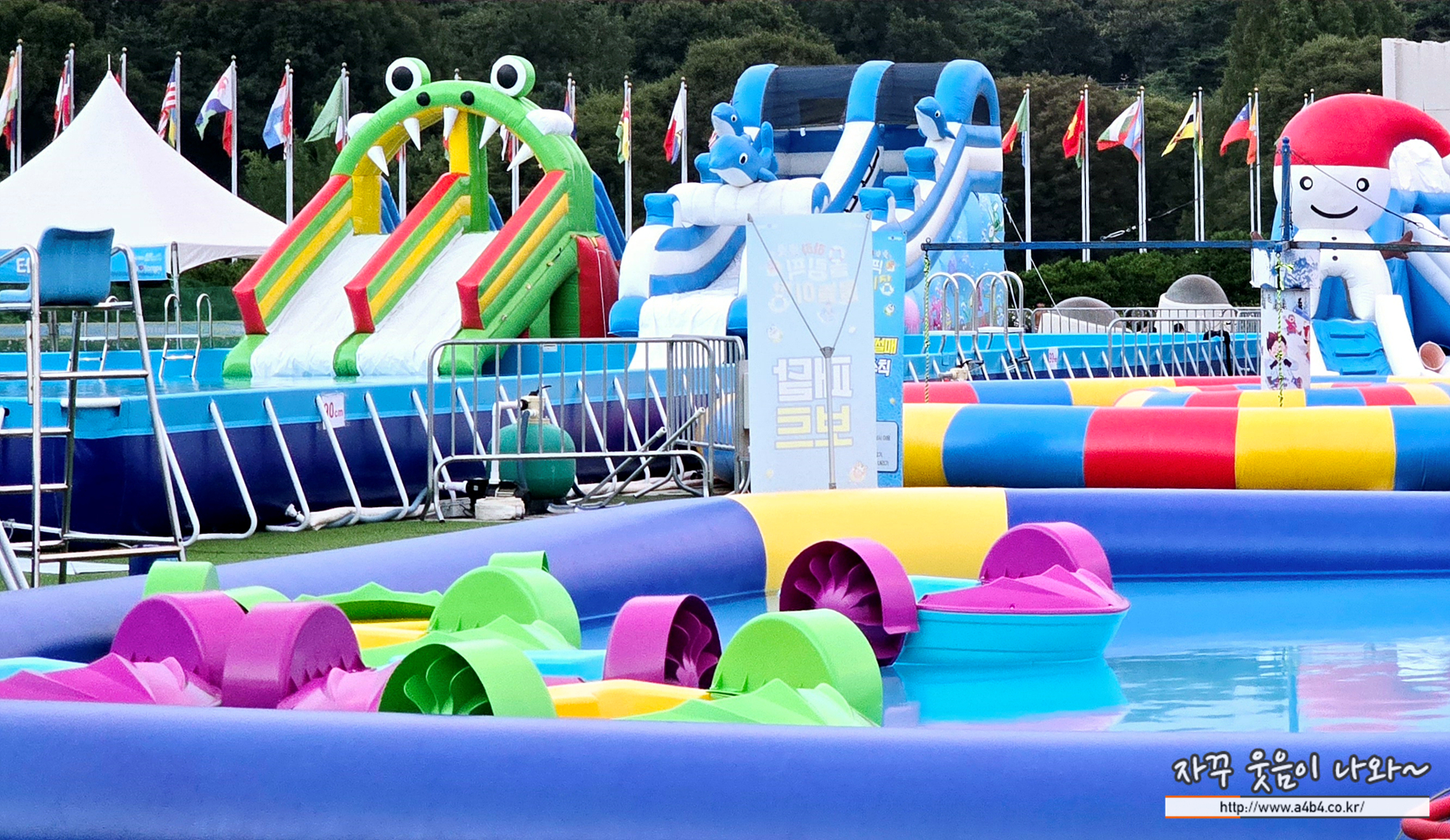 하하호호 올림픽 물놀이장은 유수풀, 슬라이드풀, 스위밍풀(유아·어린이)로 구성되어 있으며 상당히 큰 규모로 조성되어 있습니다.