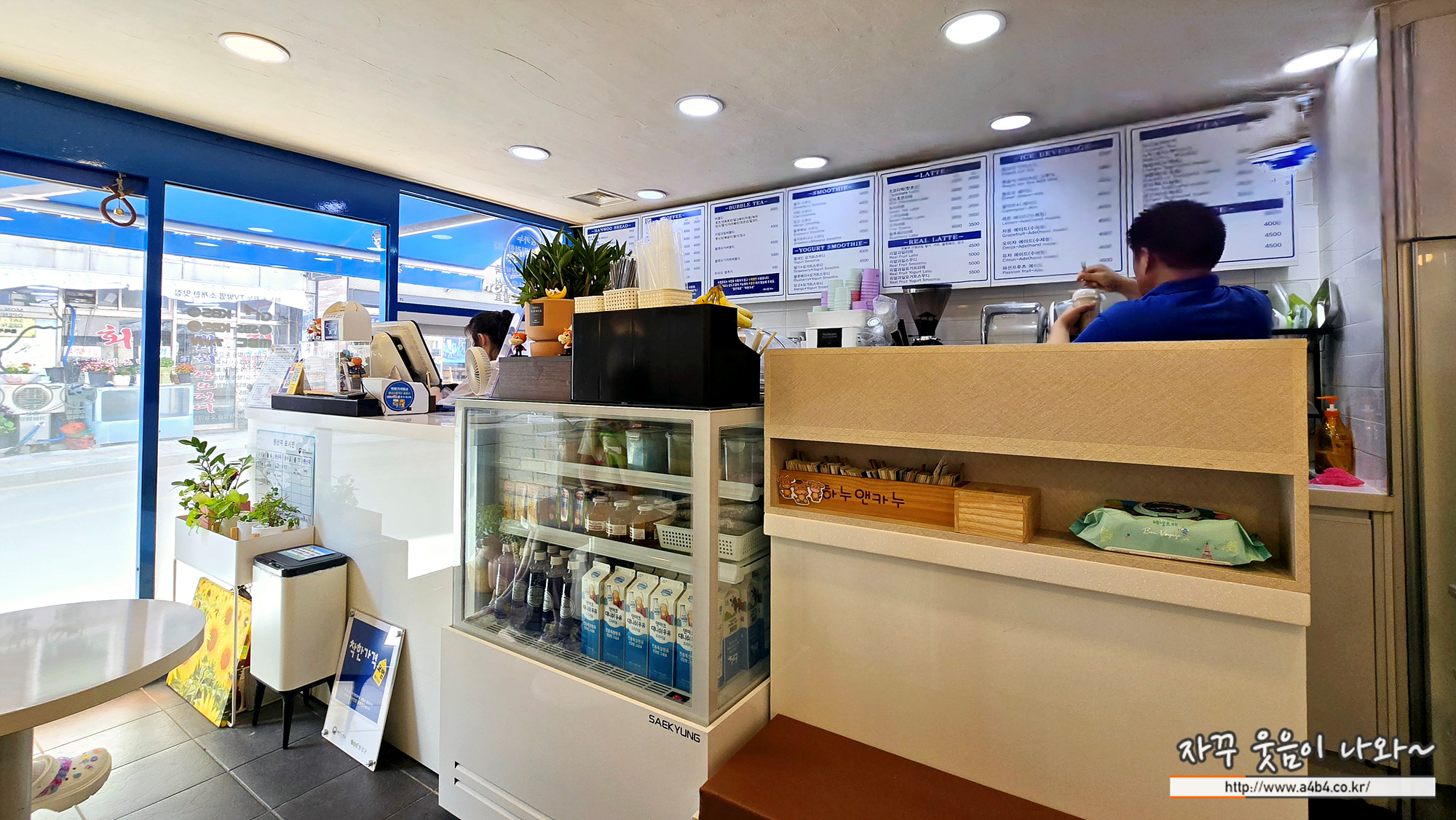 횡성 맛집으로 소문난 하누&카누 매장 모습와 실내입니다. 유명세에 비해서 다소 소박한 규모를 보여줍니다. 실내에는 작은 원형 테이블 3개가 있는 정말로 작은 공간입니다. 그러다 보니 제가 방문한 주말에는 앉아서 기다릴 공간도 부족하네요.