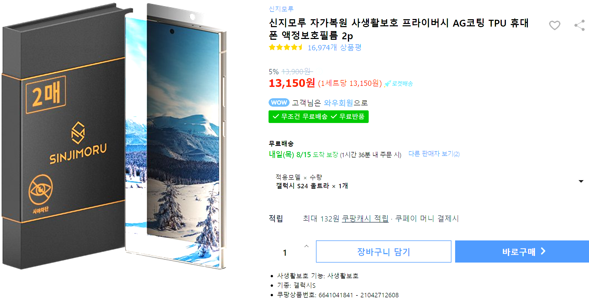 갤럭시 s24 울트라 사생활 보호 필름, 신지모루 초강추