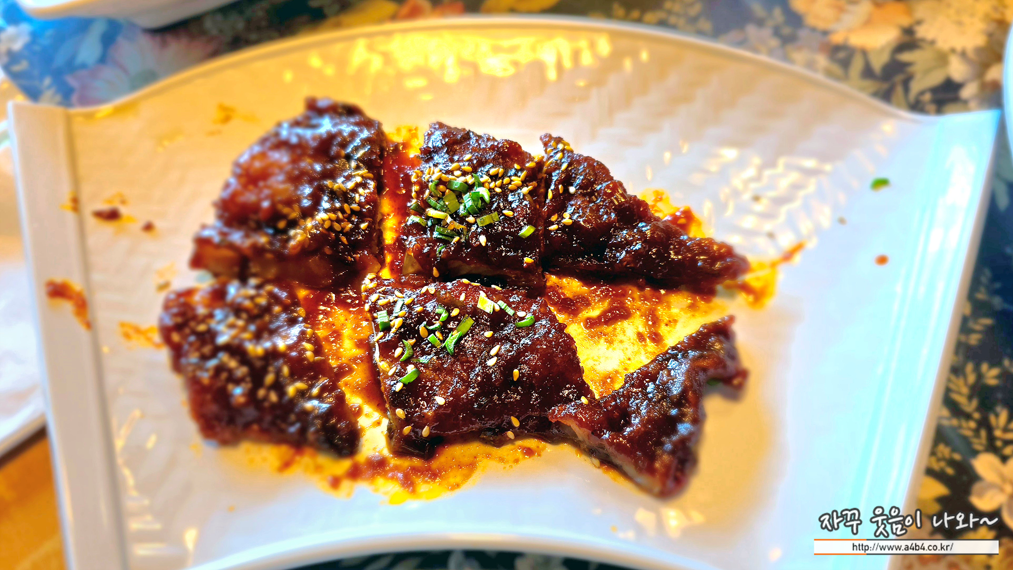 비용 추가하면 통갈비가 나오는데요. 떡갈비로 만족합니다. 소고기와 돼지고기가 섞여 들어 있고요. 고기는 미국산이라고 합니다.