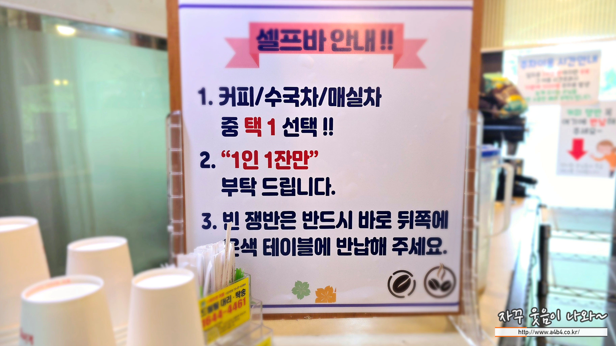 제가 방문한 날에는 매실차는 없었고 거피와 수국차만 있었습니다. 다만 커피는 아이스아메리카노가 없어서 아쉬운...