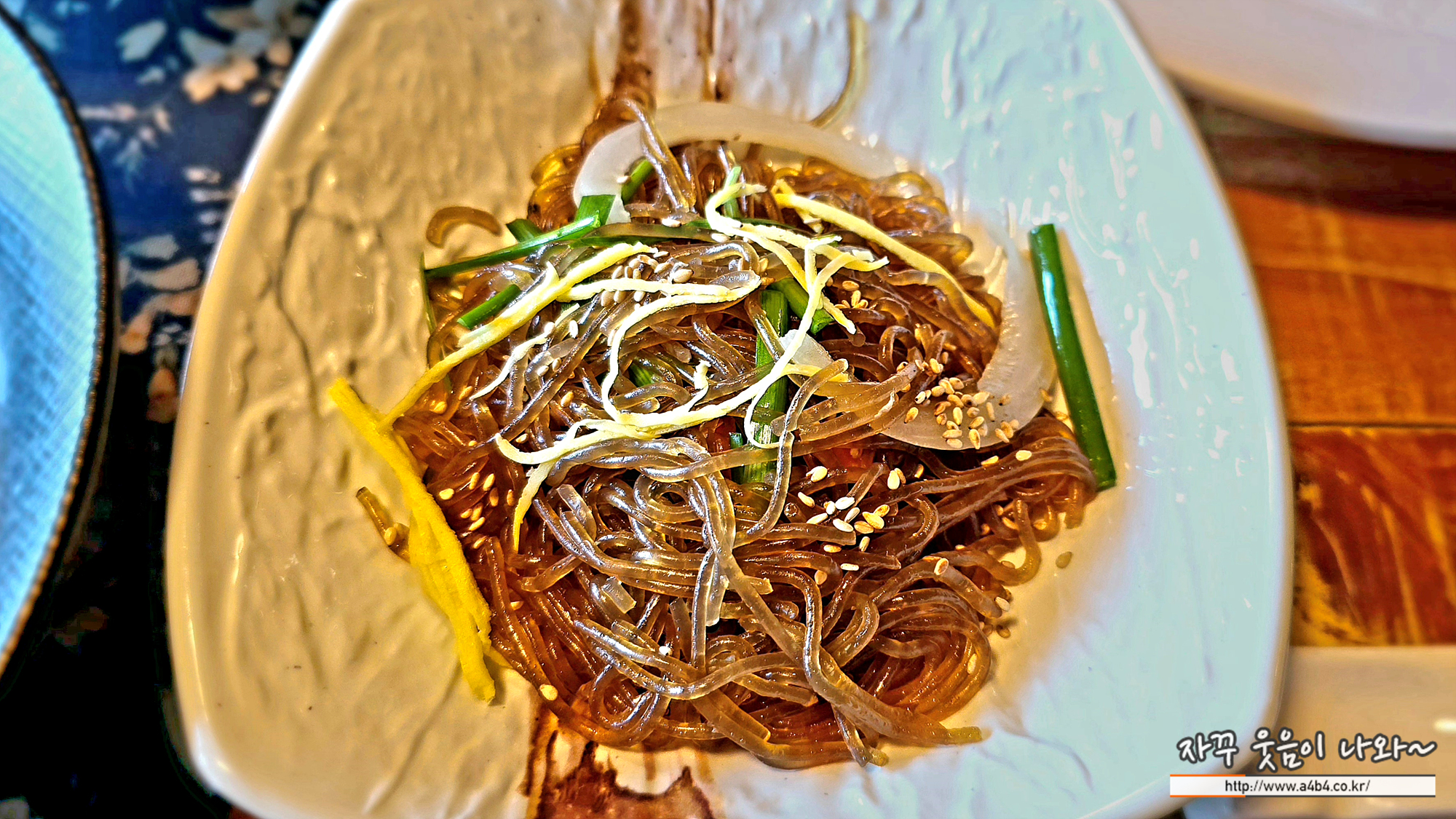 한정식에서는 빠지지 않는 잡채 나오고요.