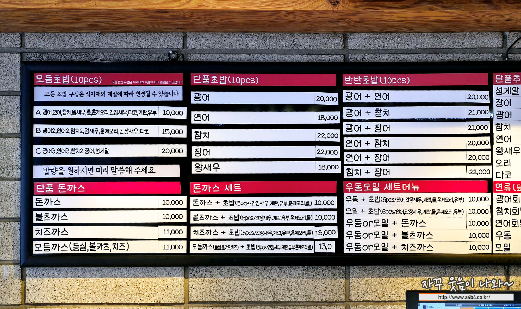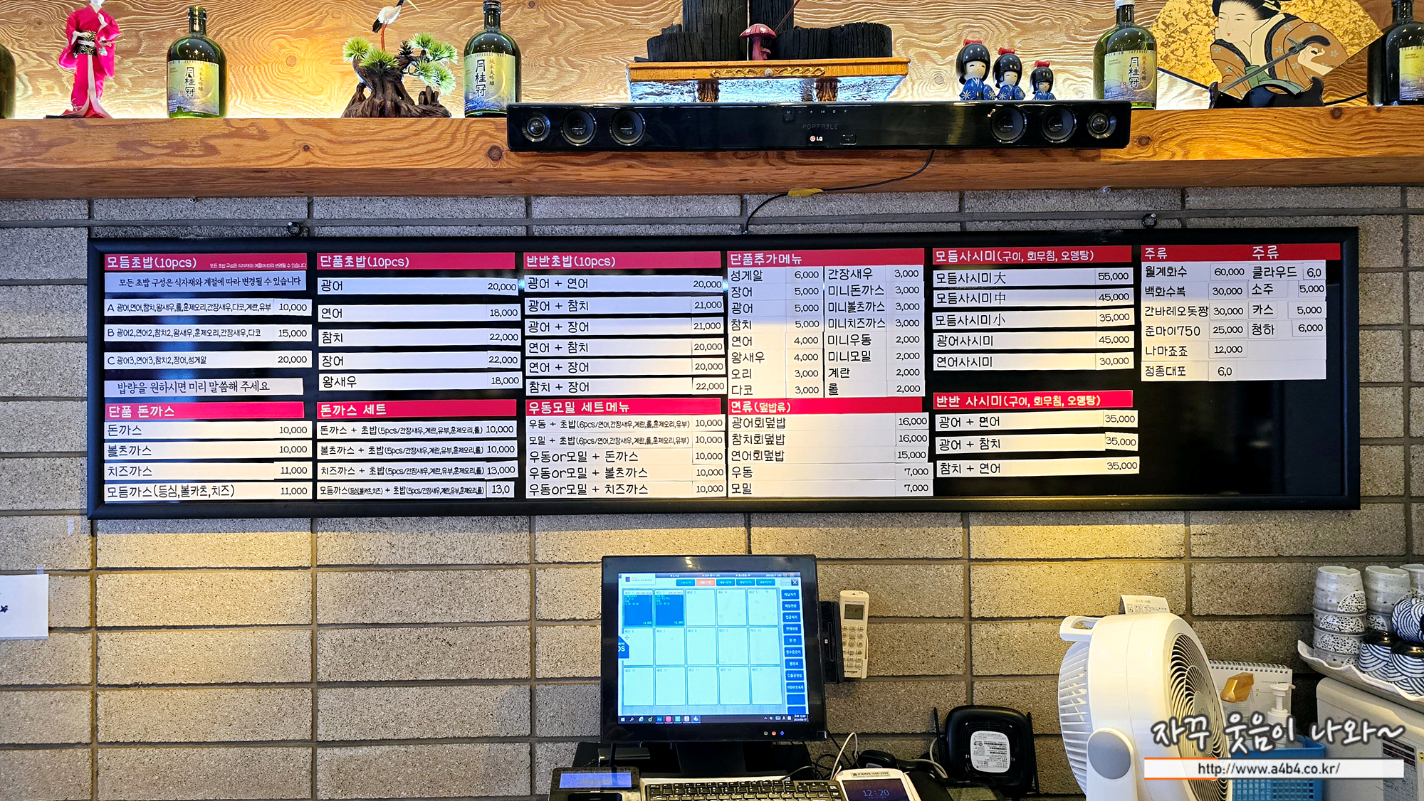 메뉴는 초밥과 우동, 돈까스가 메인이고. 이 외에도 저녁에 술 한잔과 함께할 수 있는 사시미나 몇몇 안주가 있습니다.
