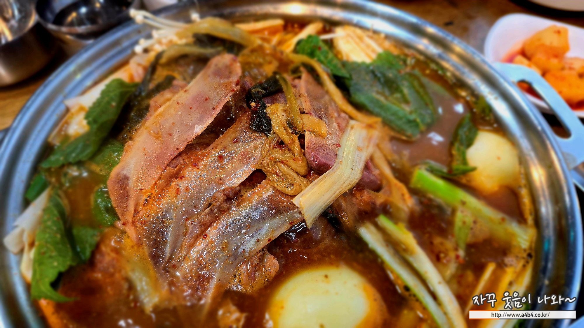 보통 감자탕은 돼지뼈를 사용합니다. (일행중에 감자탕이 소뼈인지 돼지뼈인지 물어보는 사람이 있었네요.)