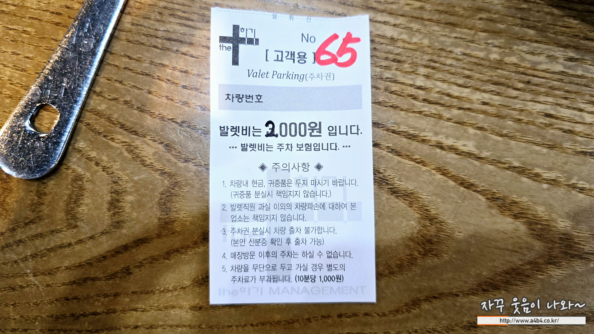 그리고 주차확인권에 발렛비 2,000원이 표시되어 있지만, 별도 발렛비용은 없습니다. (2,000원 드렸더니 다시 돌려 주시네요.)