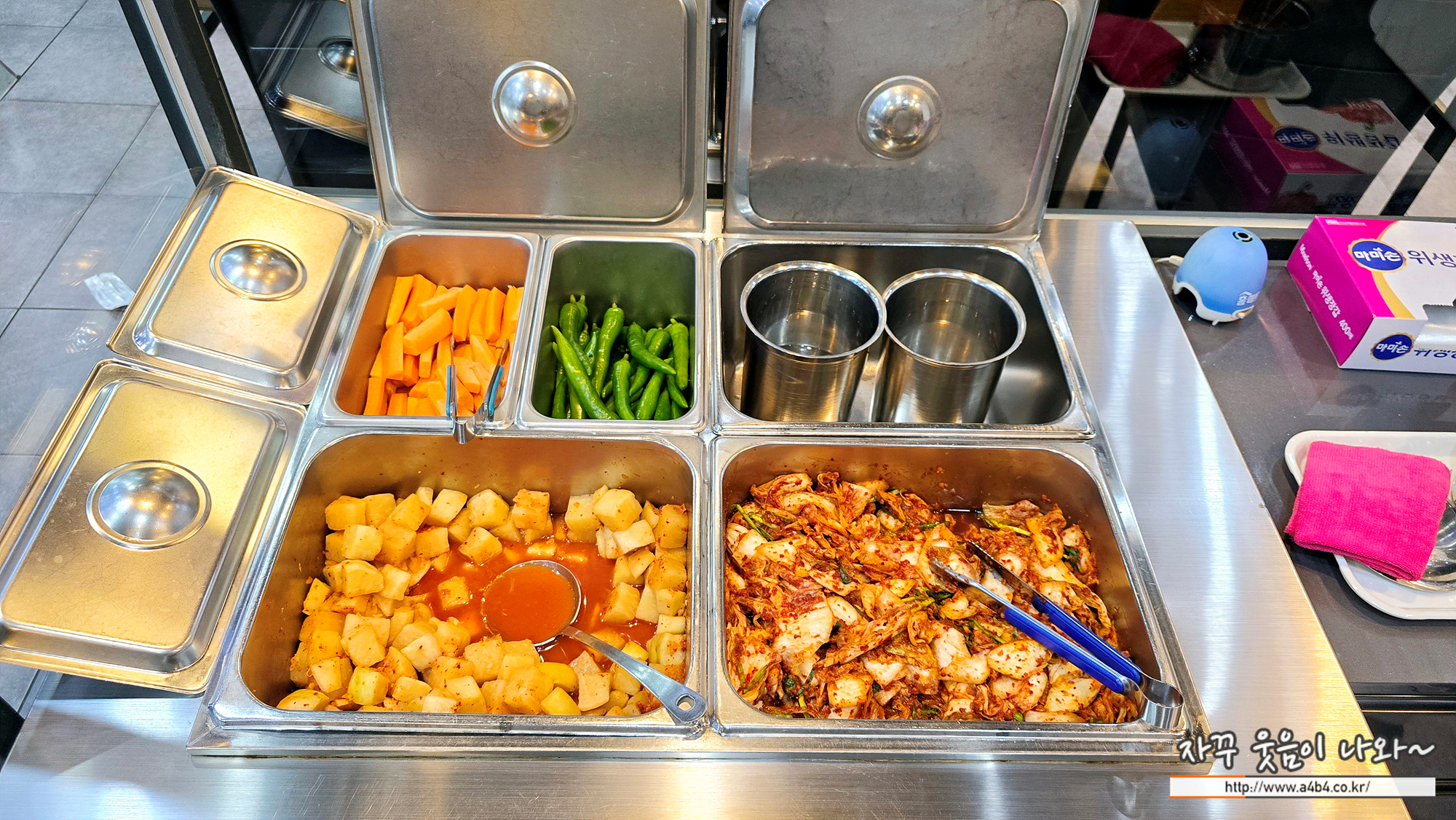 반찬이 더 필요하시면 매장 입구에 있는 셀프코너에서 담아오시면 됩니다.
